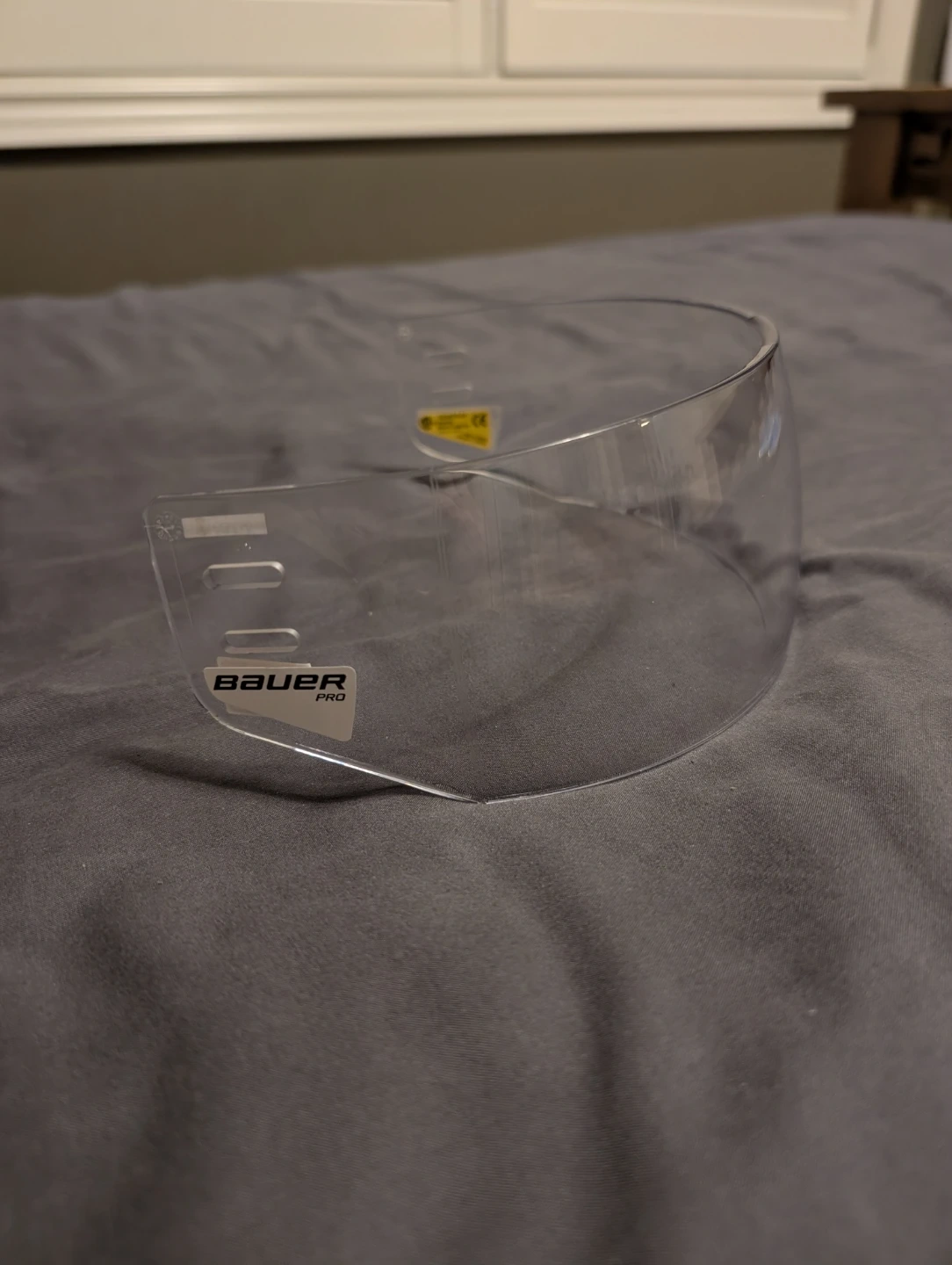 Selling a Bauer Pro hockey helmet visor. It appears to be in good condition and includes the mounting hardware in the original packaging!