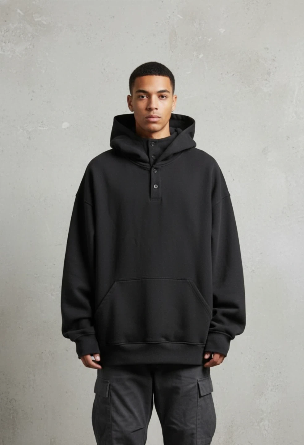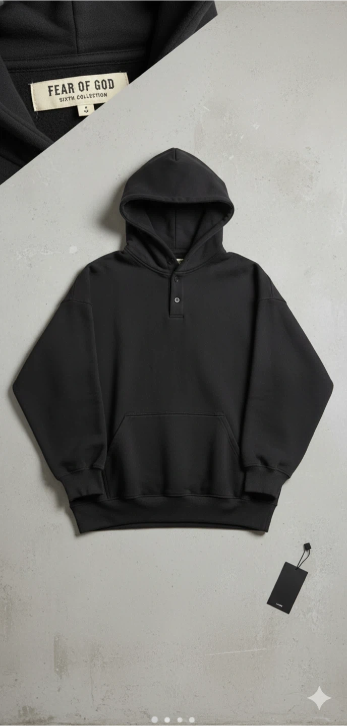 Selling a Fear of God Sixth Collection hoodie in size large! It's a stylish and comfortable piece perfect for everyday wear. The hoodie features a classic design with a front pocket and button details.