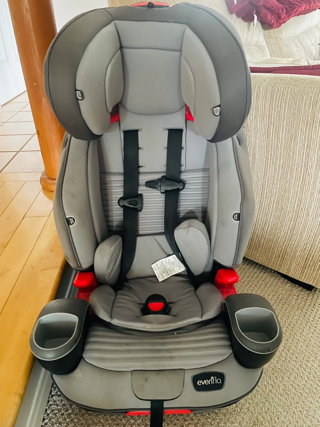 Selling an Evenflo car seat in good condition! Great for grandparents to have as a back up. It's grey and black, and ready for a new family. Perfect for keeping your little one safe.