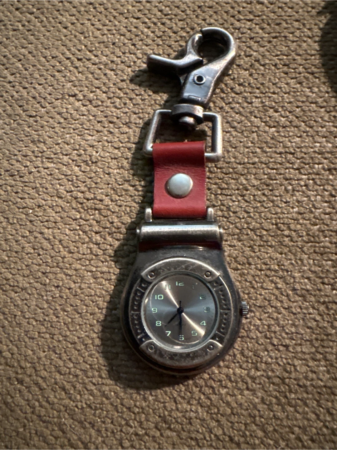 Selling a clip on watch. It's a unique piece, perfect for clipping onto a bag or belt loop. The watch face is easy to read and it's in great condition!