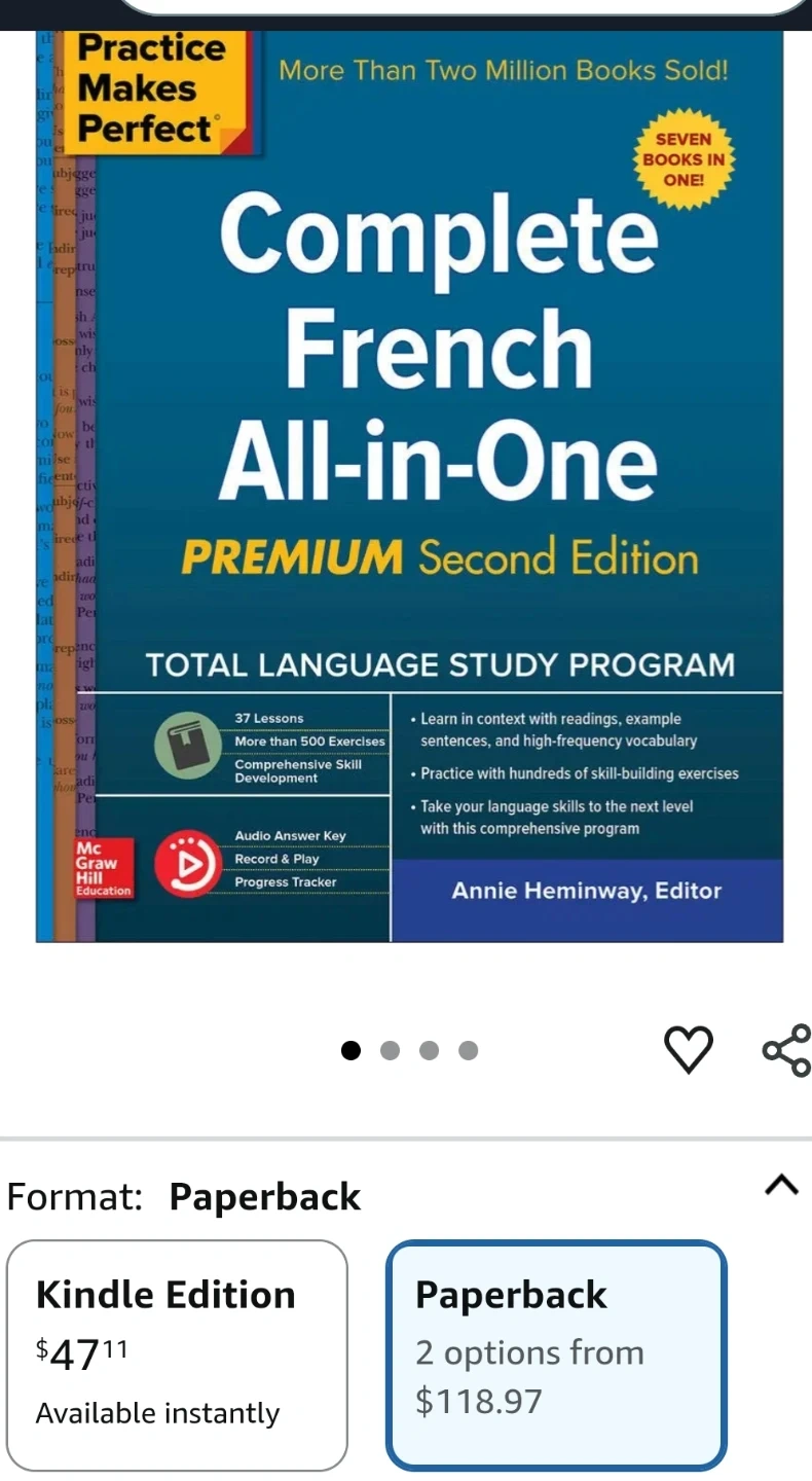 Selling a copy of Complete French All-in-One, Premium Second Edition! This book is a total language study program, with 37 lessons and more than 500 exercises. It also includes an audio answer key, record & play, and a progress tracker to help you take your language skills to the next level