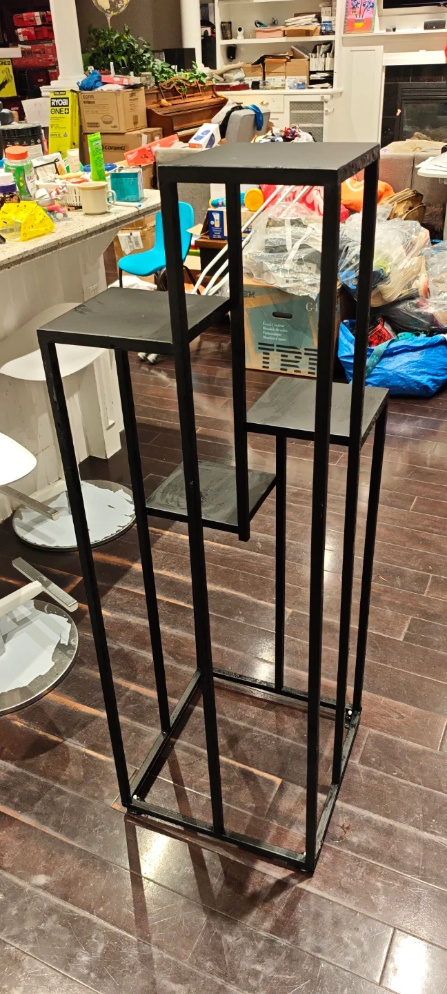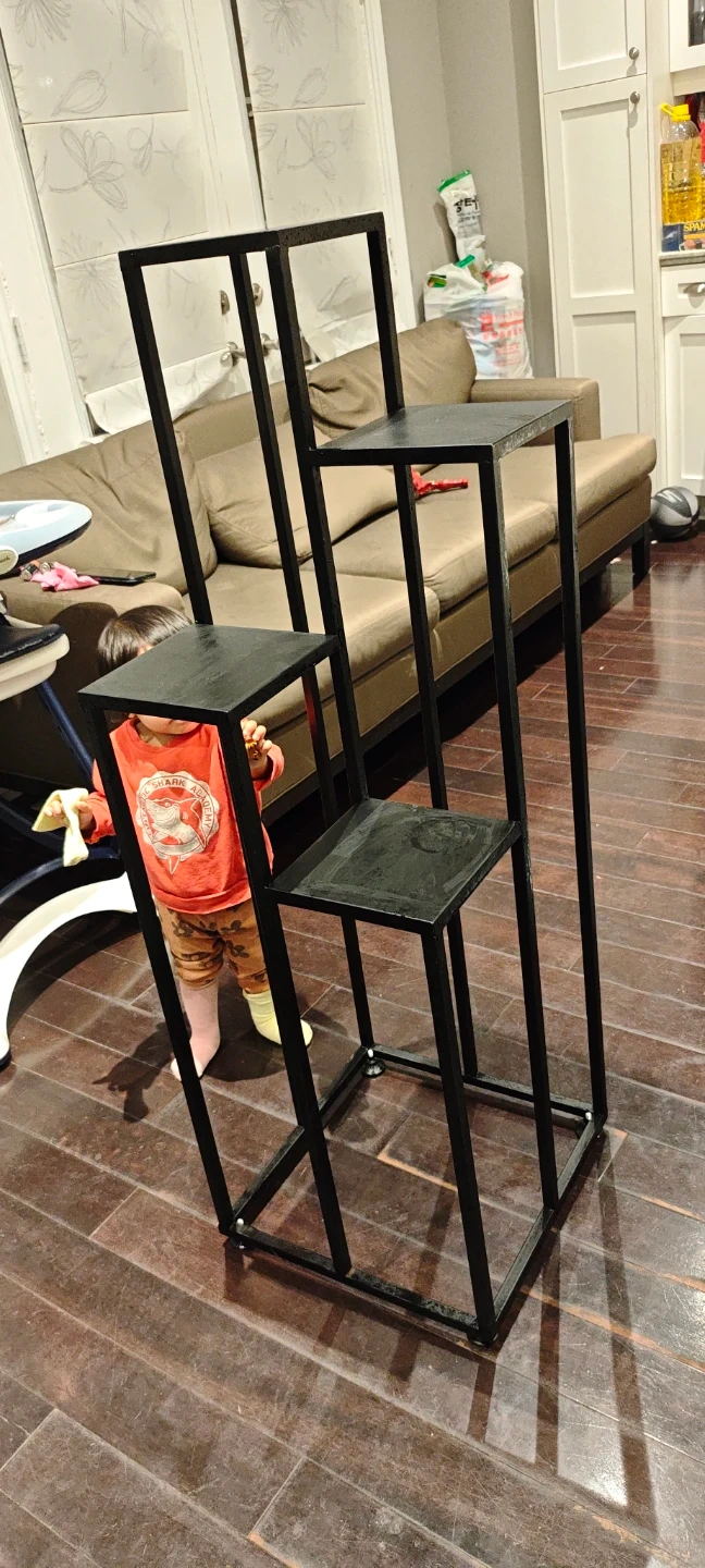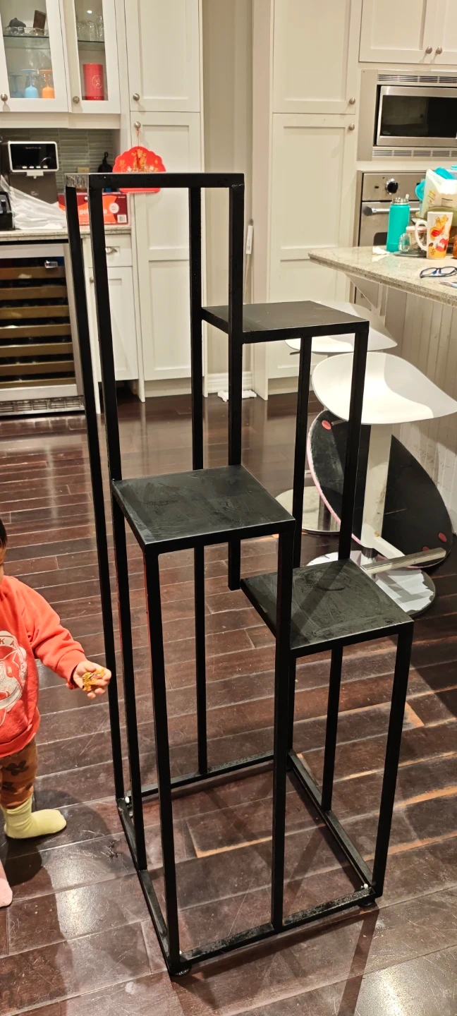 Selling a black metal plant stand. It has multiple tiers, perfect for displaying your favourite plants indoors or outdoors! It's in great shape and ready to add some style to your space