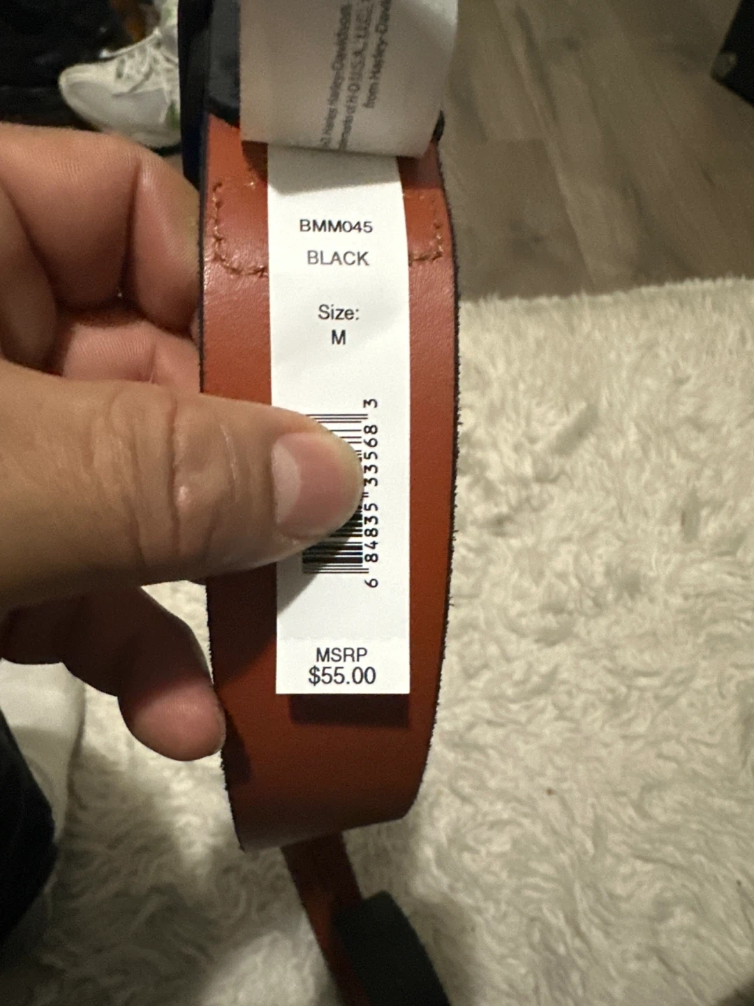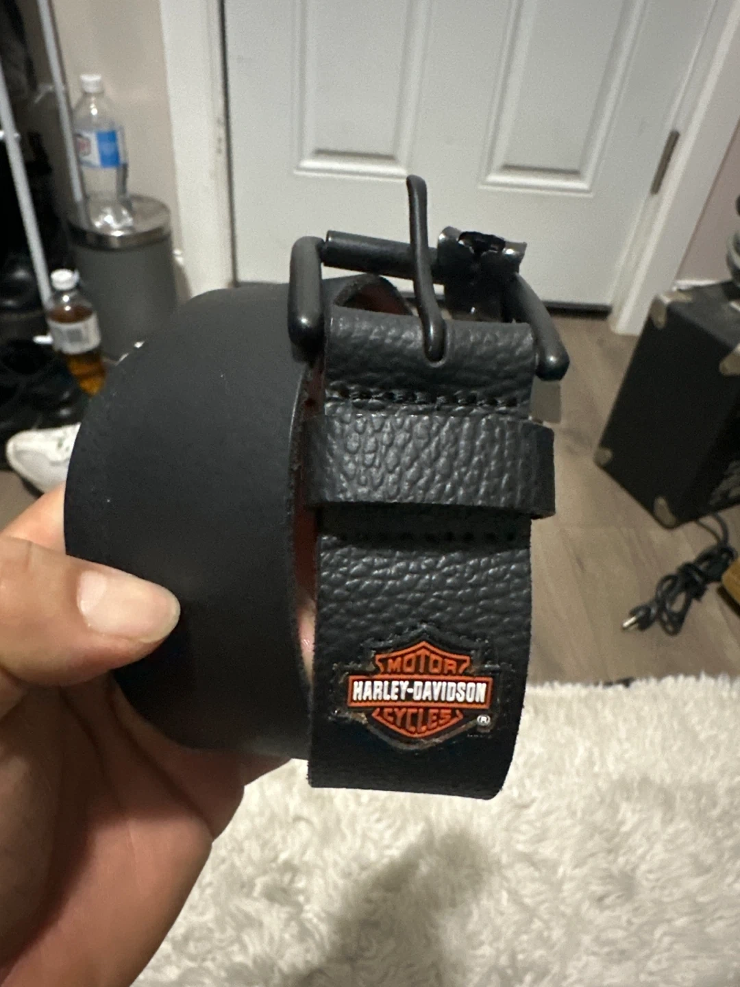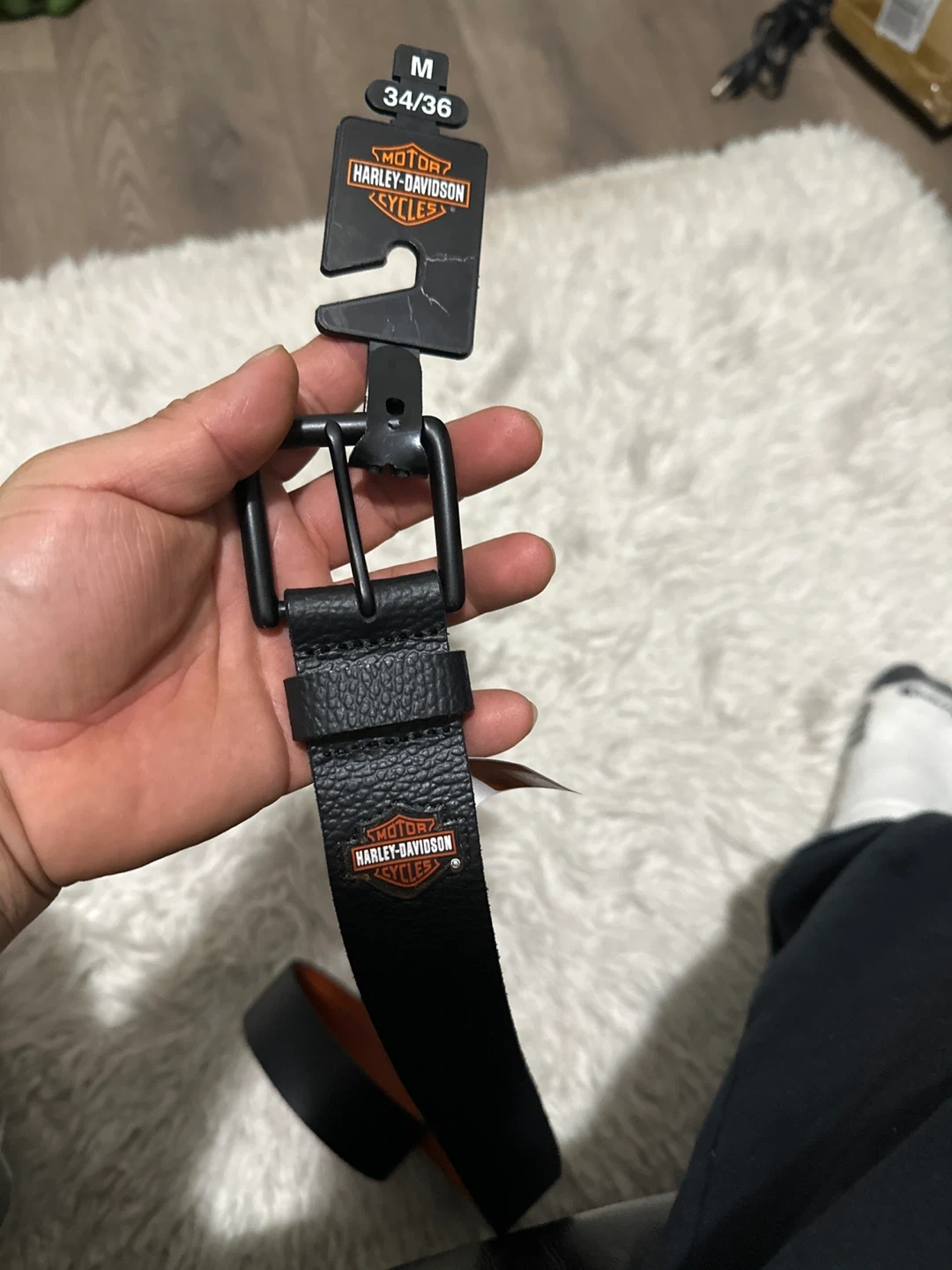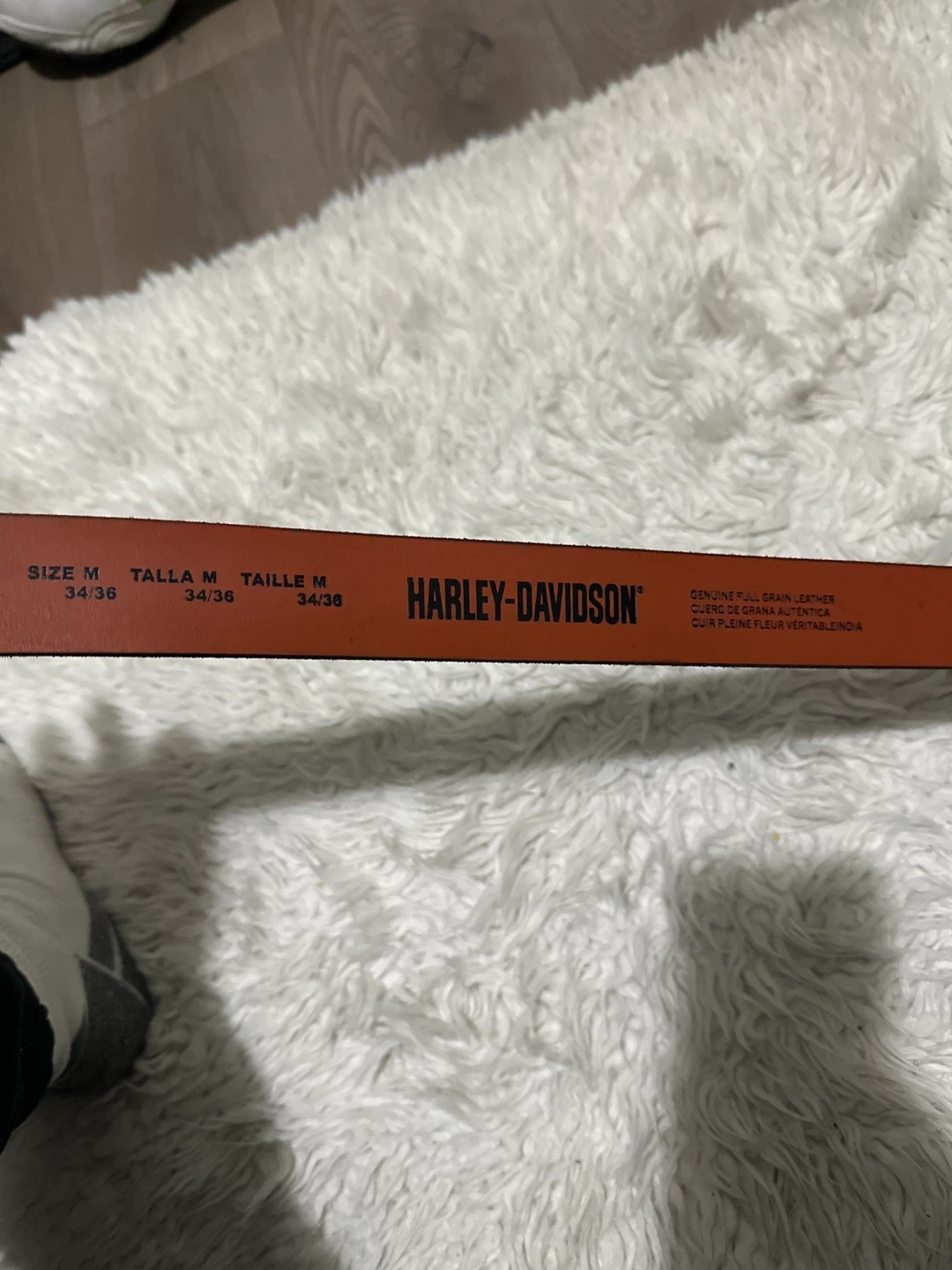 Selling a Harley-Davidson black leather belt in size M (34/36). It's in great condition and has a stylish look. The belt is made of genuine full-grain leather. Originally retailed for $55