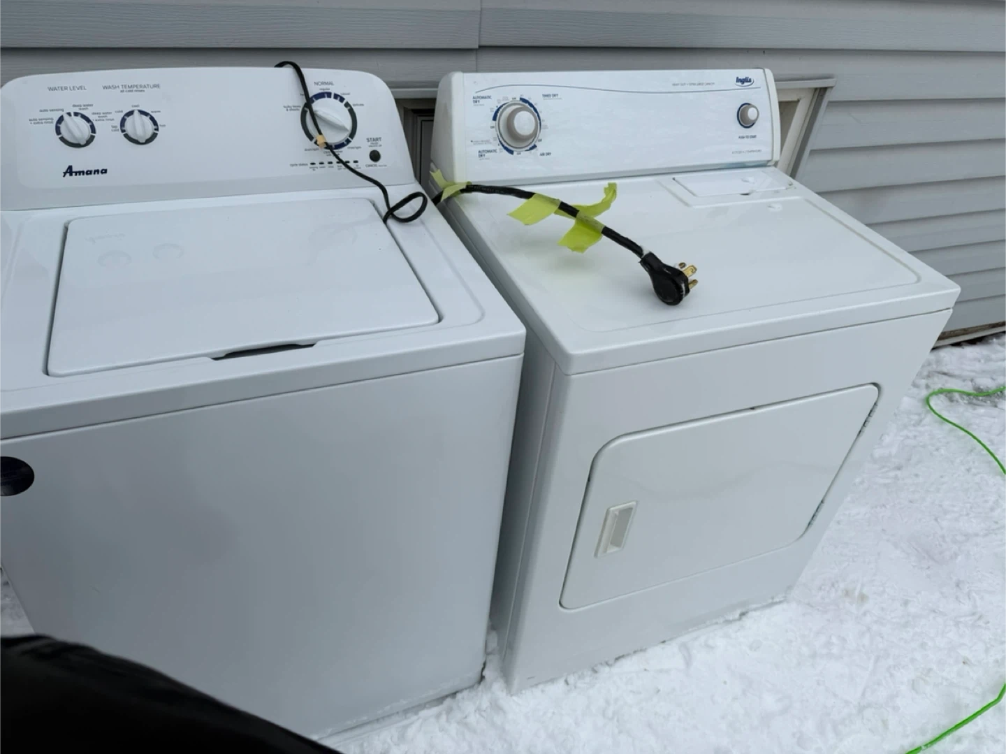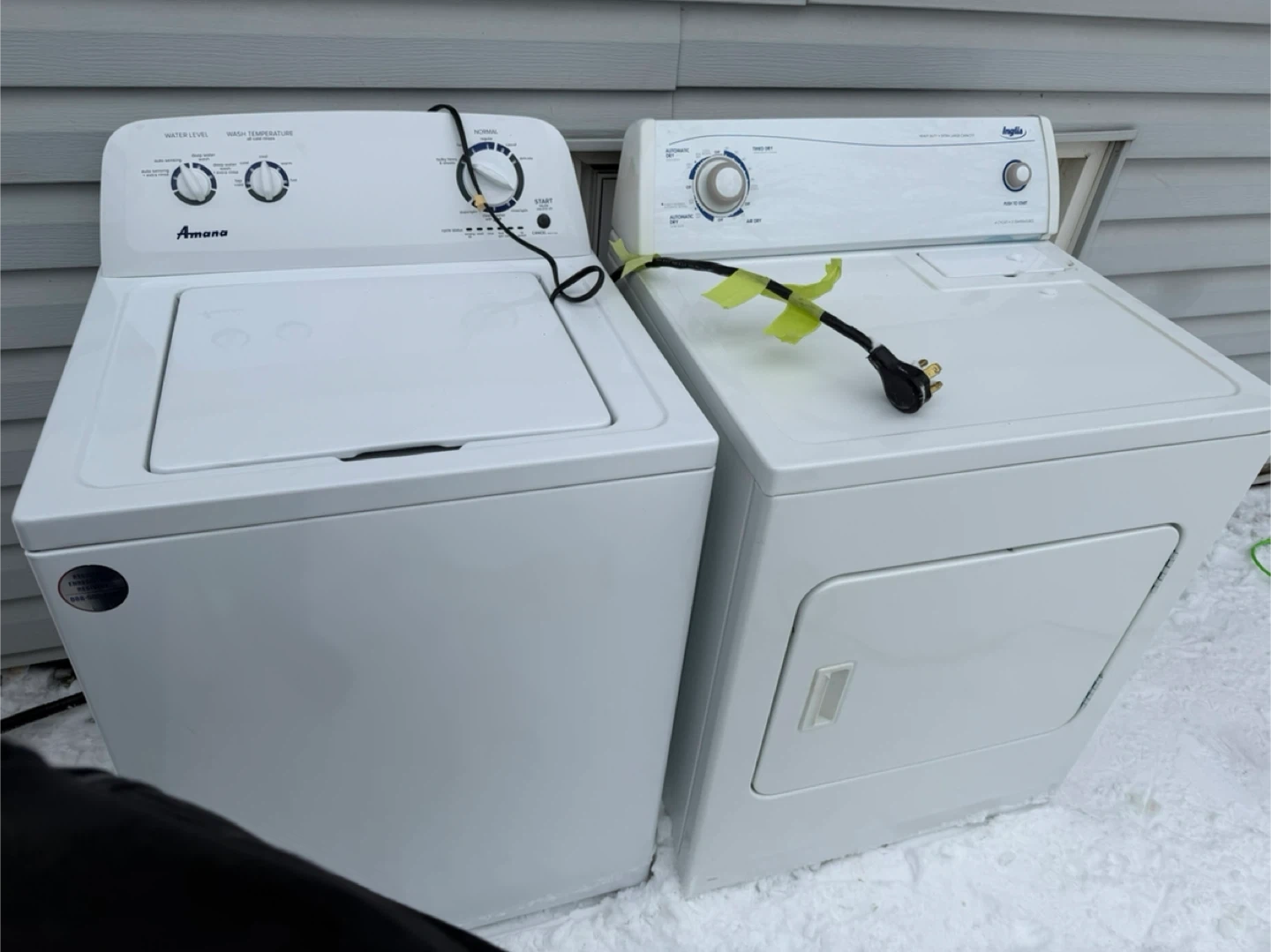Selling a matching Amana washer and Inglis dryer set. Both are in good working condition and ready to go! They're white and would fit nicely in any laundry room. Get both for one great price!