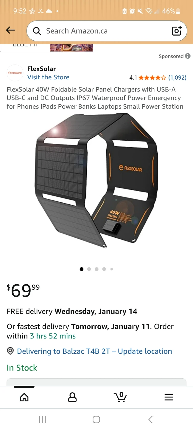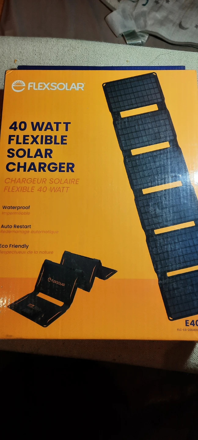 Selling a FlexSolar 40W foldable solar charger. It's waterproof and has an auto-restart function. It's also eco-friendly. The box is included!