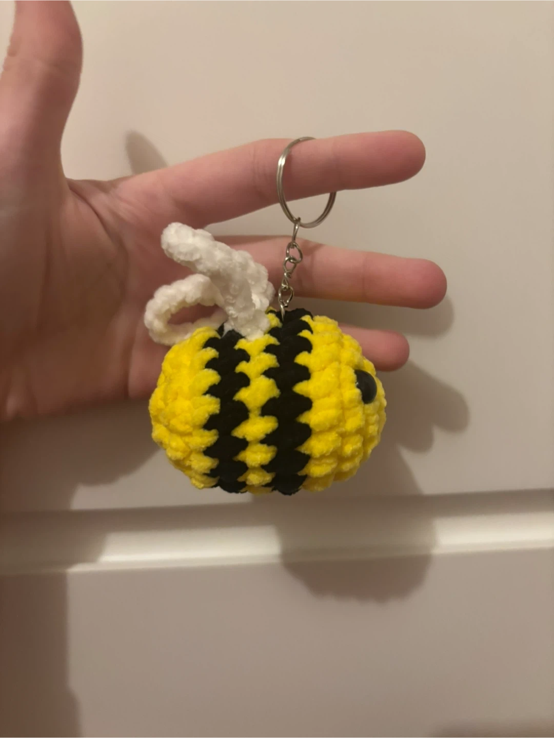 Check out this adorable handmade crochet bee keychain! It's yellow and black and in excellent condition. Perfect for adding a bit of charm to your keys or bag