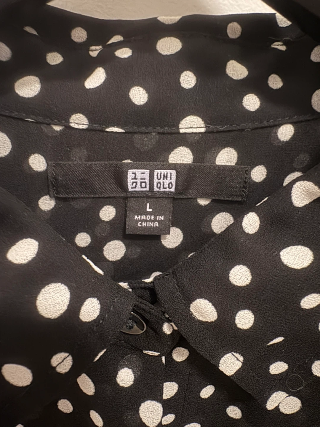 Selling a cute Uniqlo blouse with a polka dot pattern. It's a size L and in great condition. Perfect for adding a touch of fun to your wardrobe!