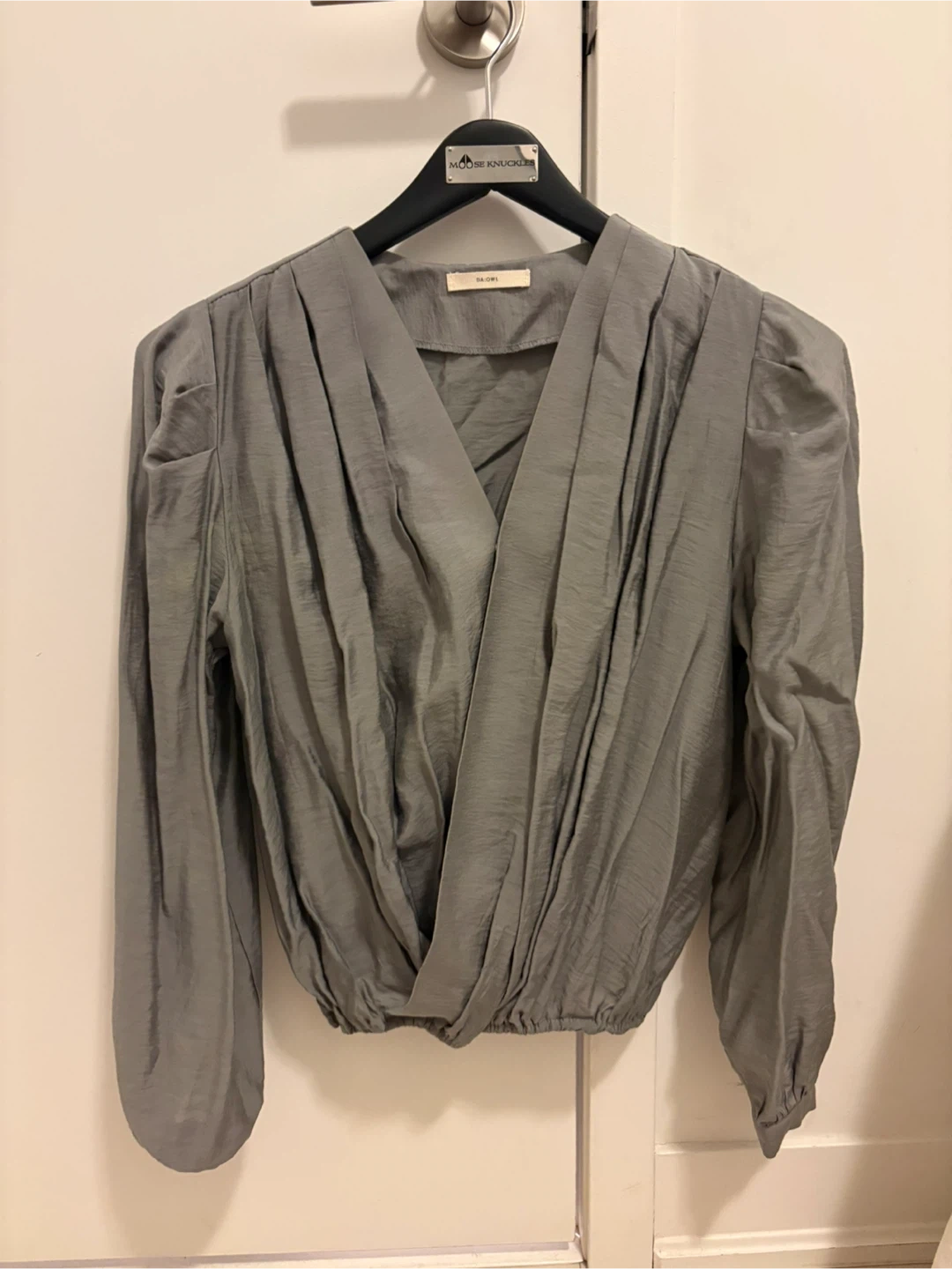 Here's a stylish grey long sleeve blouse from DA:OWL. It's in great condition and ready for a new home in your wardrobe! The material has a nice sheen to it.