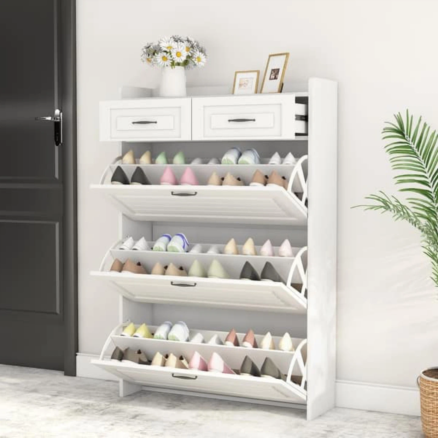 Selling a brand new shoe cabinet, still in its original box! It's a stylish and practical storage solution for your entryway or closet. Keep your shoes organized and your space clutter-free with this cabinet
