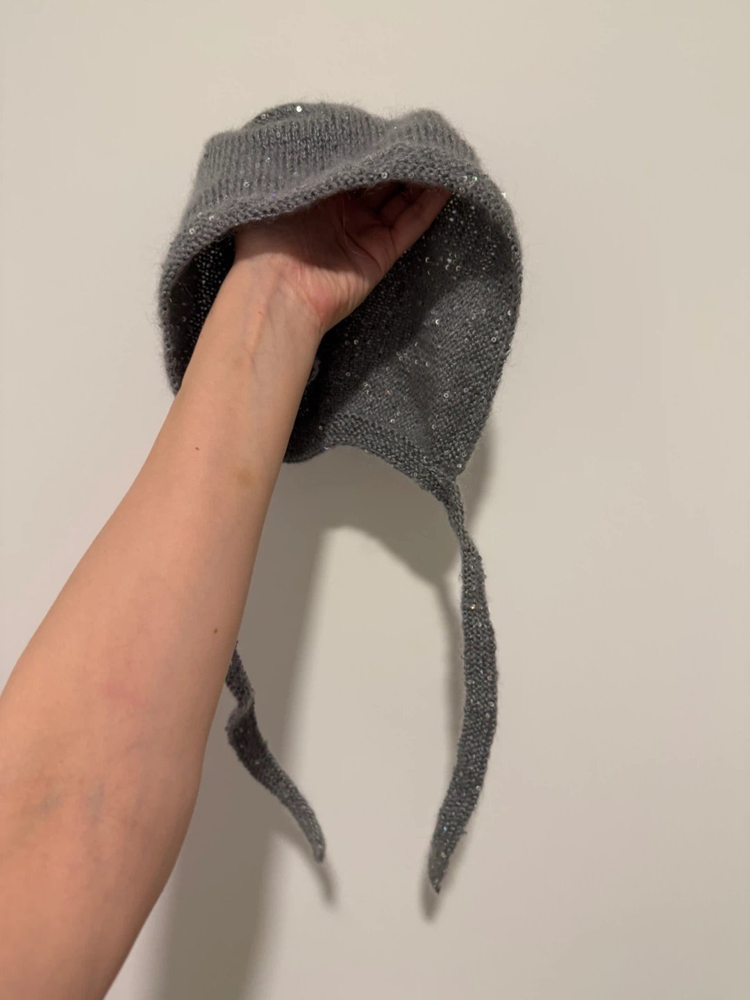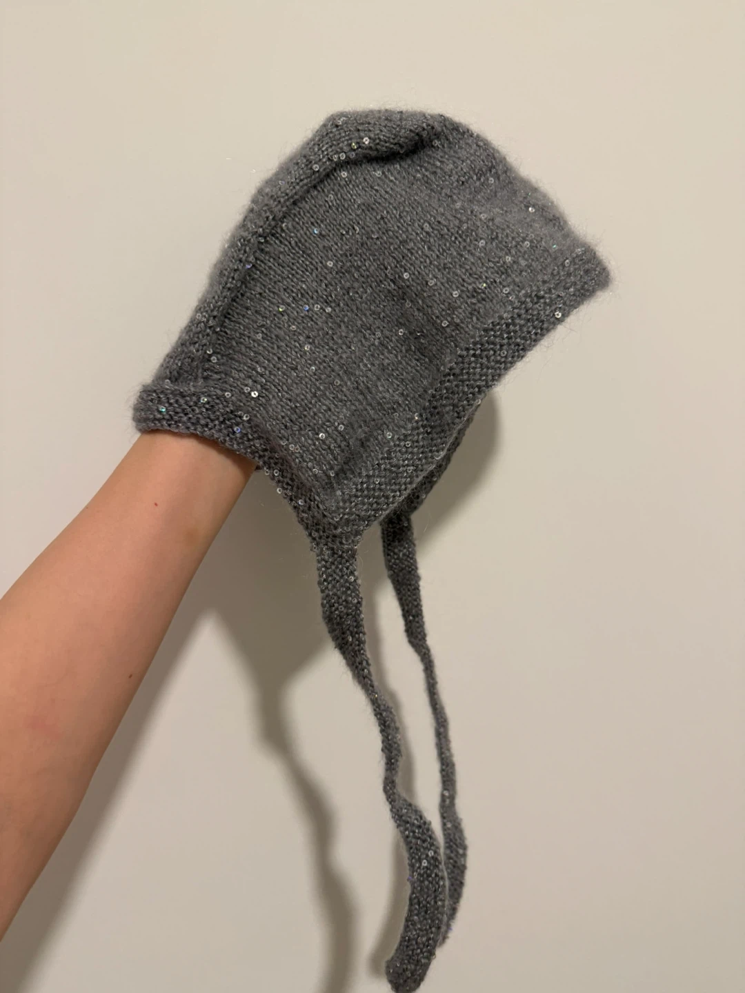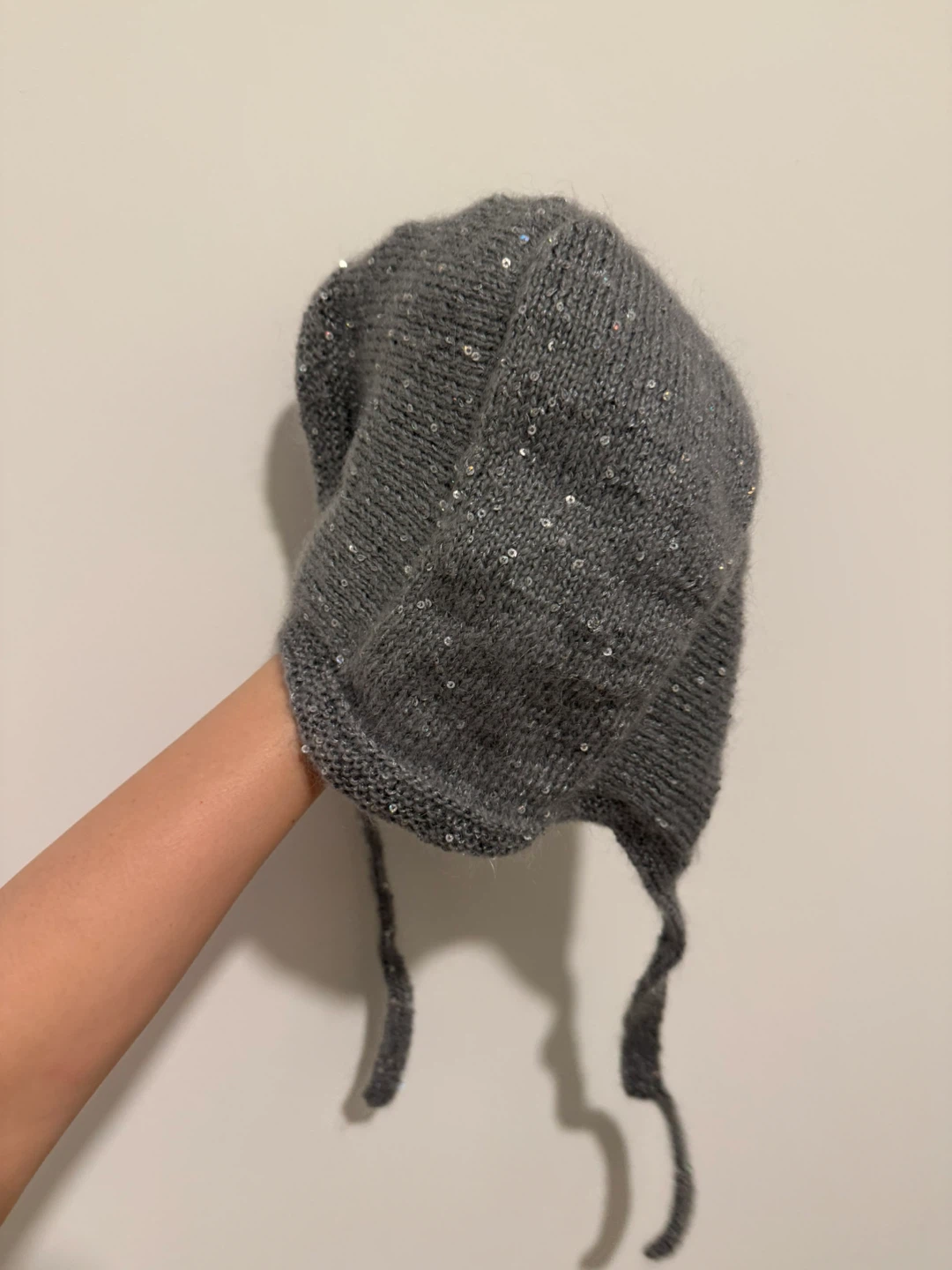 Handmade item, I knitted it after making same one for a friend but ended up never wearing it so it’s new. perfect for keeping warm during the colder months. It has some mohair in the blend. (The photo you see is my friend wearing her bonnet, it’s not the same one I’m selling but it’s same material and same scheme so it’s identical)