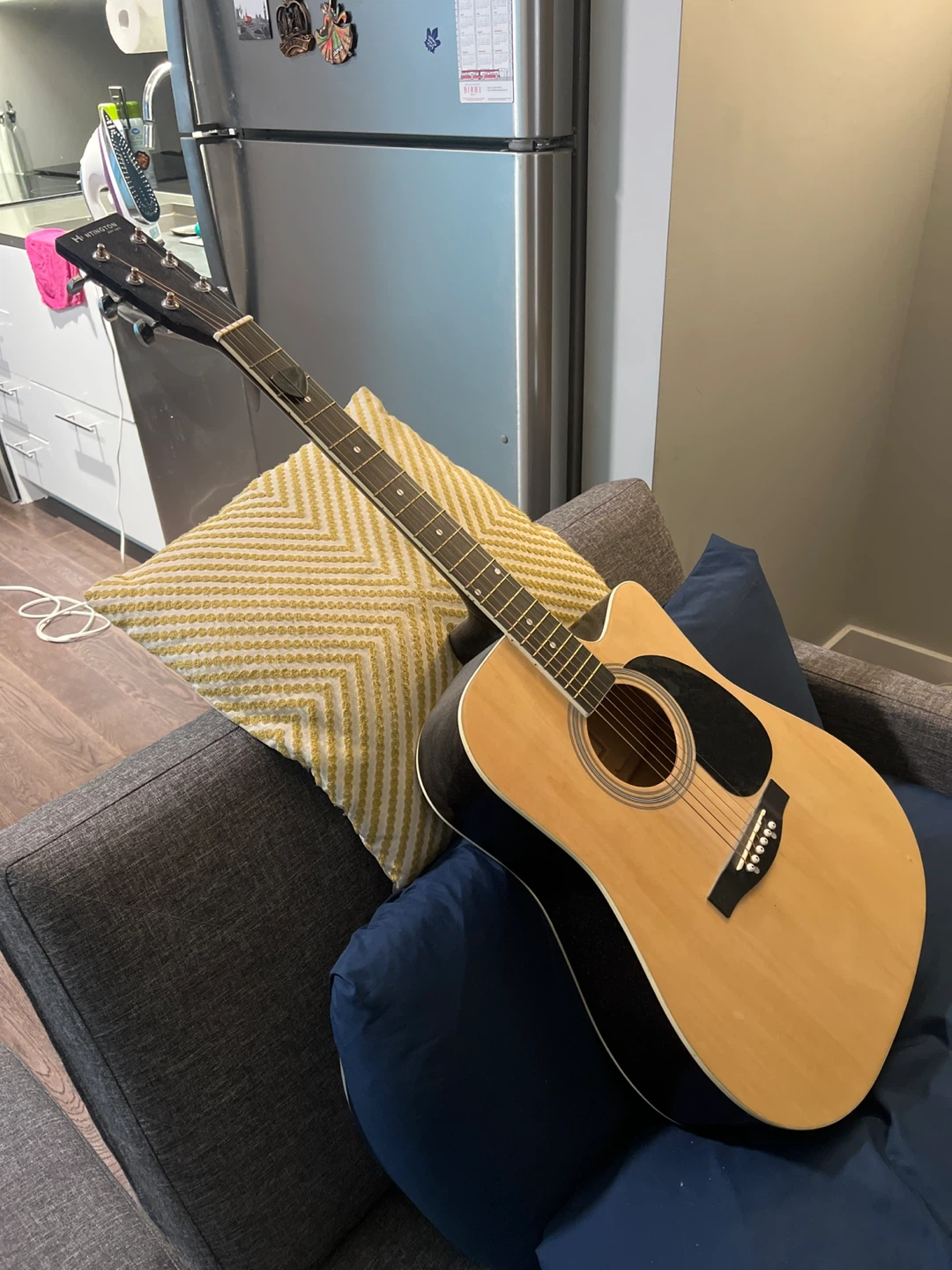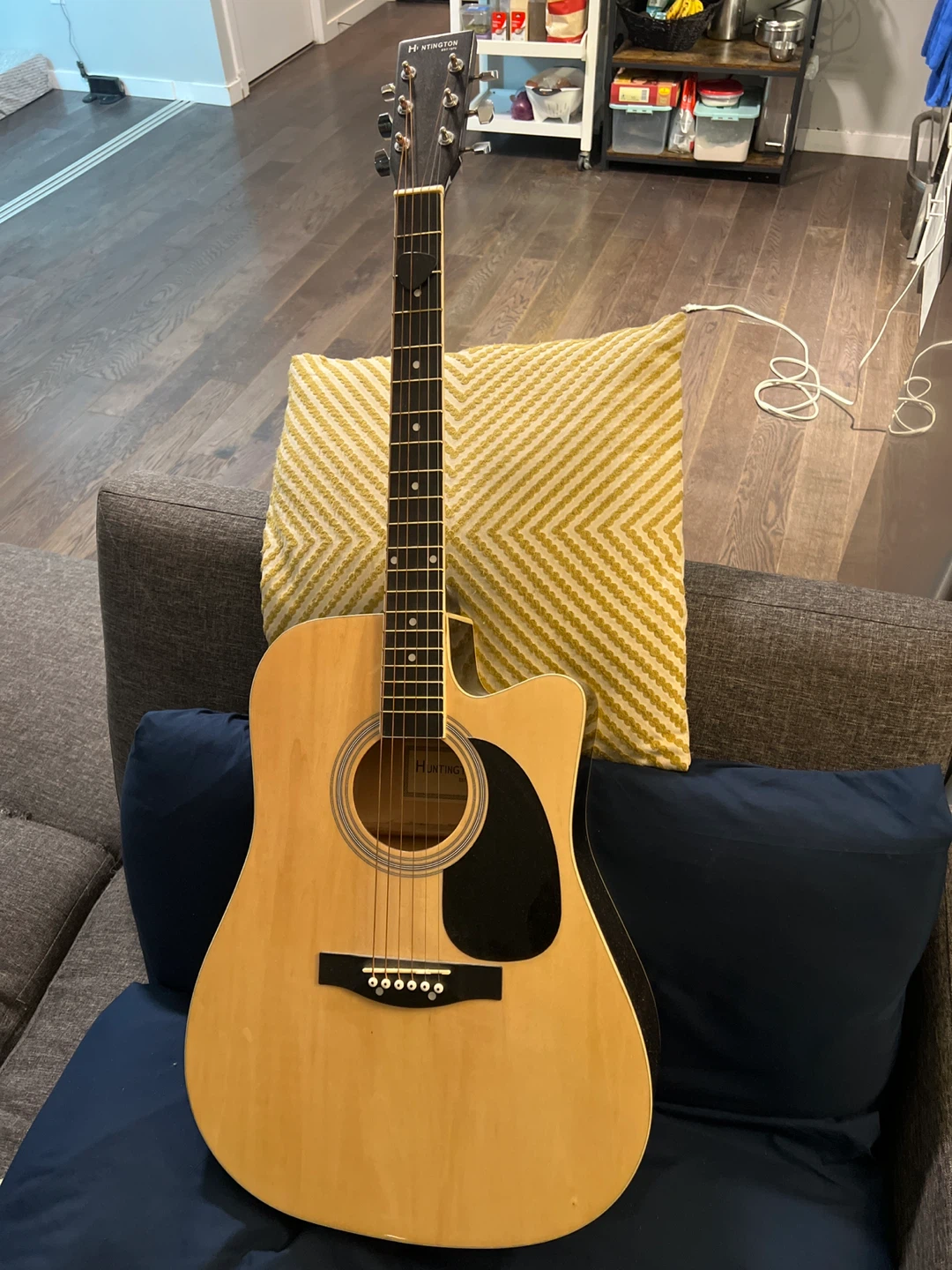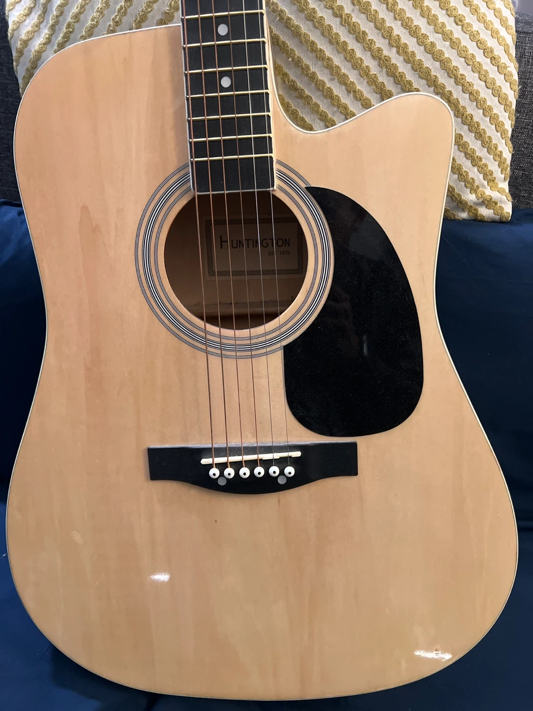 Selling a Huntington acoustic guitar in great condition! It's a beautiful instrument that's ready to be played. If you're looking for a quality acoustic guitar. No issues so far. Moving to US so downsizing.