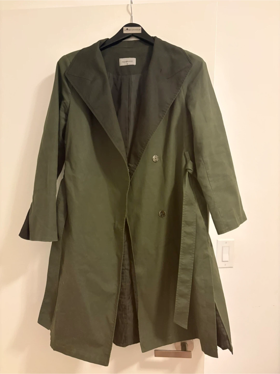 Selling an Indibrand trench coat in a lovely olive green colour. It's a size M and in great condition. Perfect for layering during those in-between seasons!