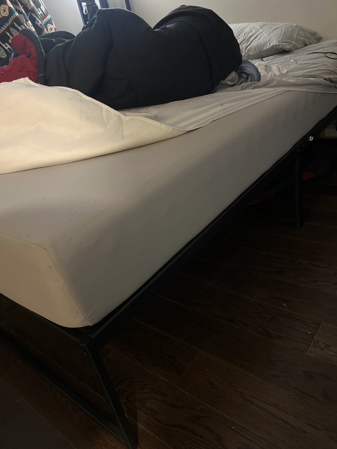 Selling a queen size mattress and bed frame. It's in good condition and ready for a new home. Sturdy and reliable. Always covered with a mattress cover.