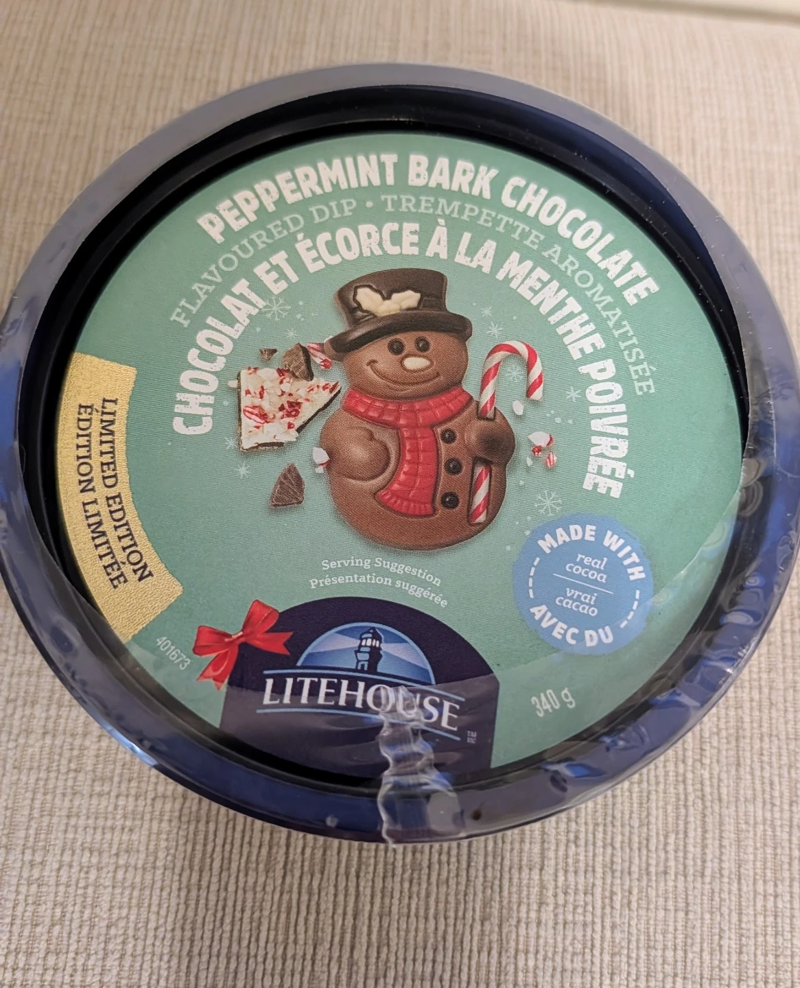 Selling a tub of Litehouse Peppermint Bark Chocolate Flavoured Dip. It's a limited edition item!