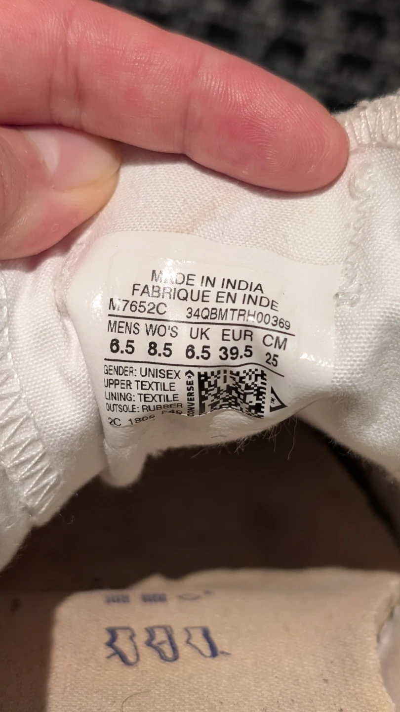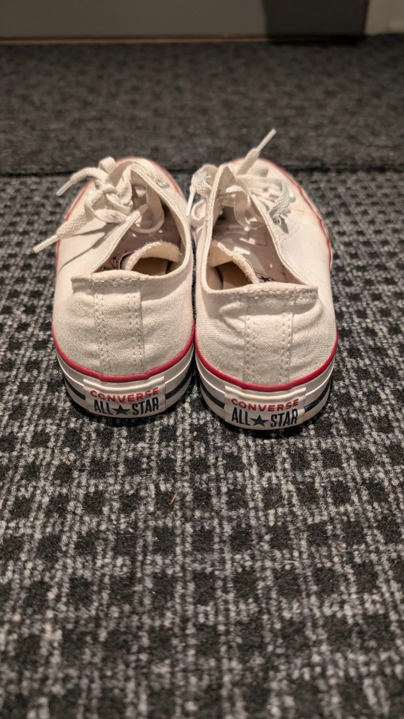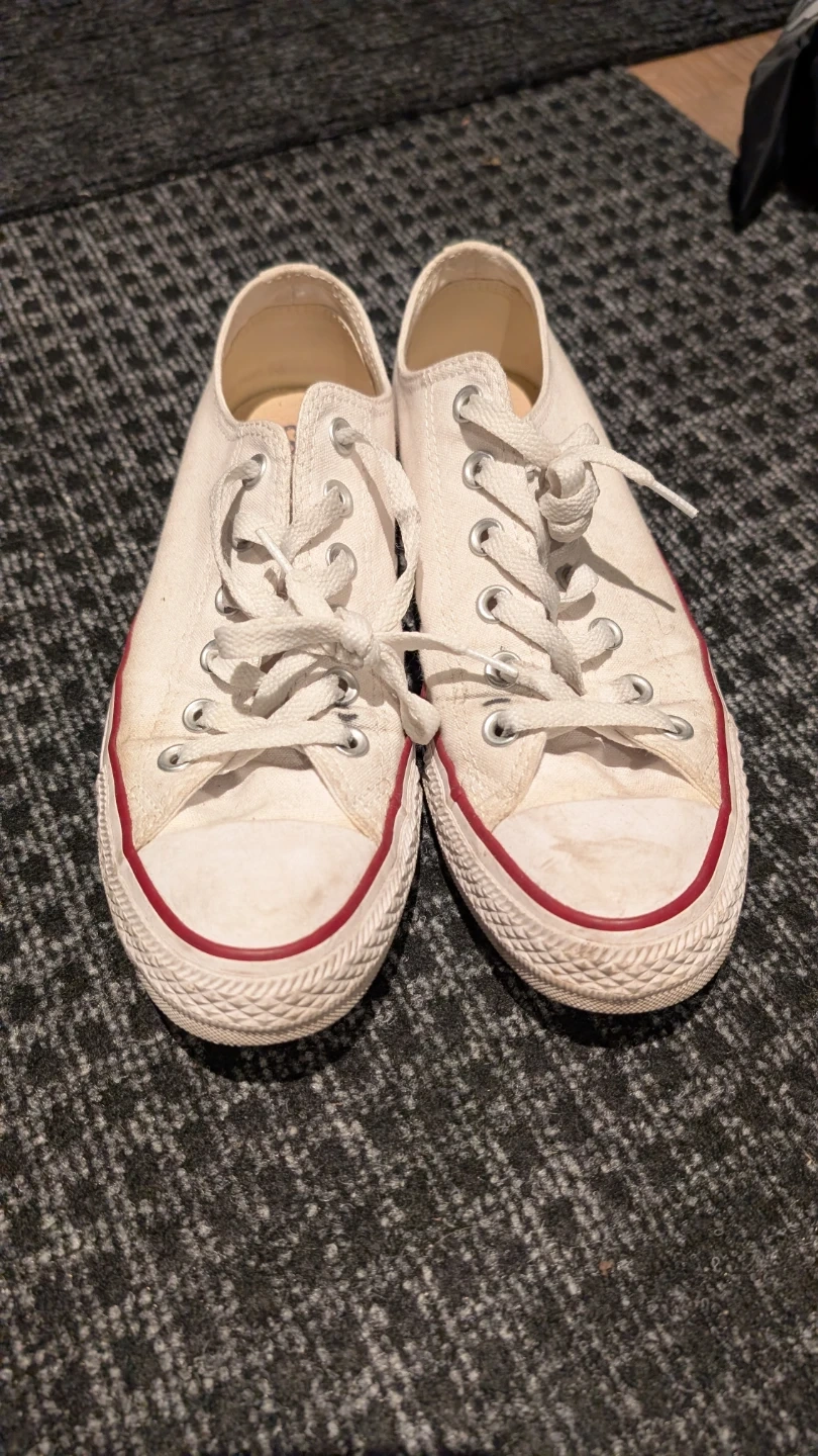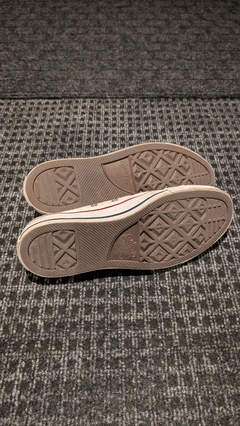 Selling a pair of Converse All Star sneakers in white. They're in excellent used condition. The size is Women's 8.5 US. Selling because they're too big on me