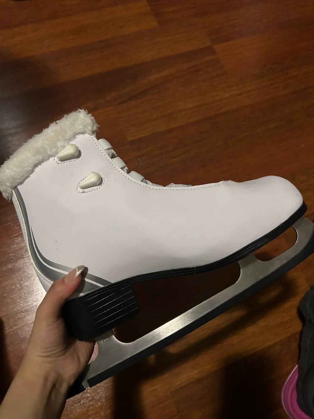 Selling a pair of white figure ice skates in great condition! They are a size 7 and ready for some fun on the ice. Perfect for beginners or recreational skaters