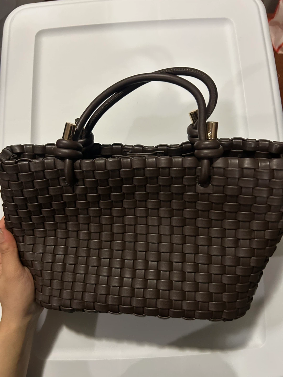 Selling a cute brown woven tote bag from H&M! It's in great condition and perfect for everyday use. The woven design adds a touch of texture to any outfit