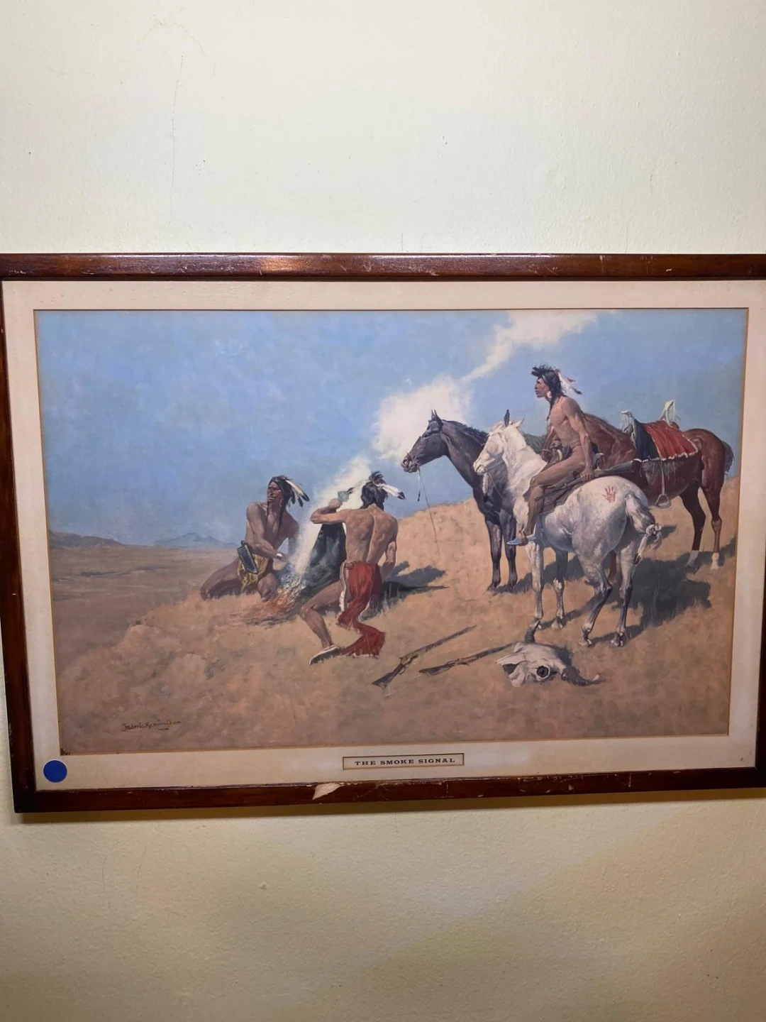 This is a framed print of Frederic Remington's "The Smoke Signal". It's a great piece of art!