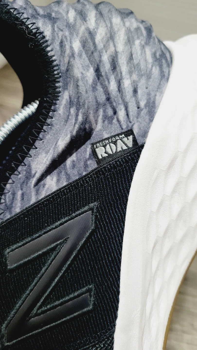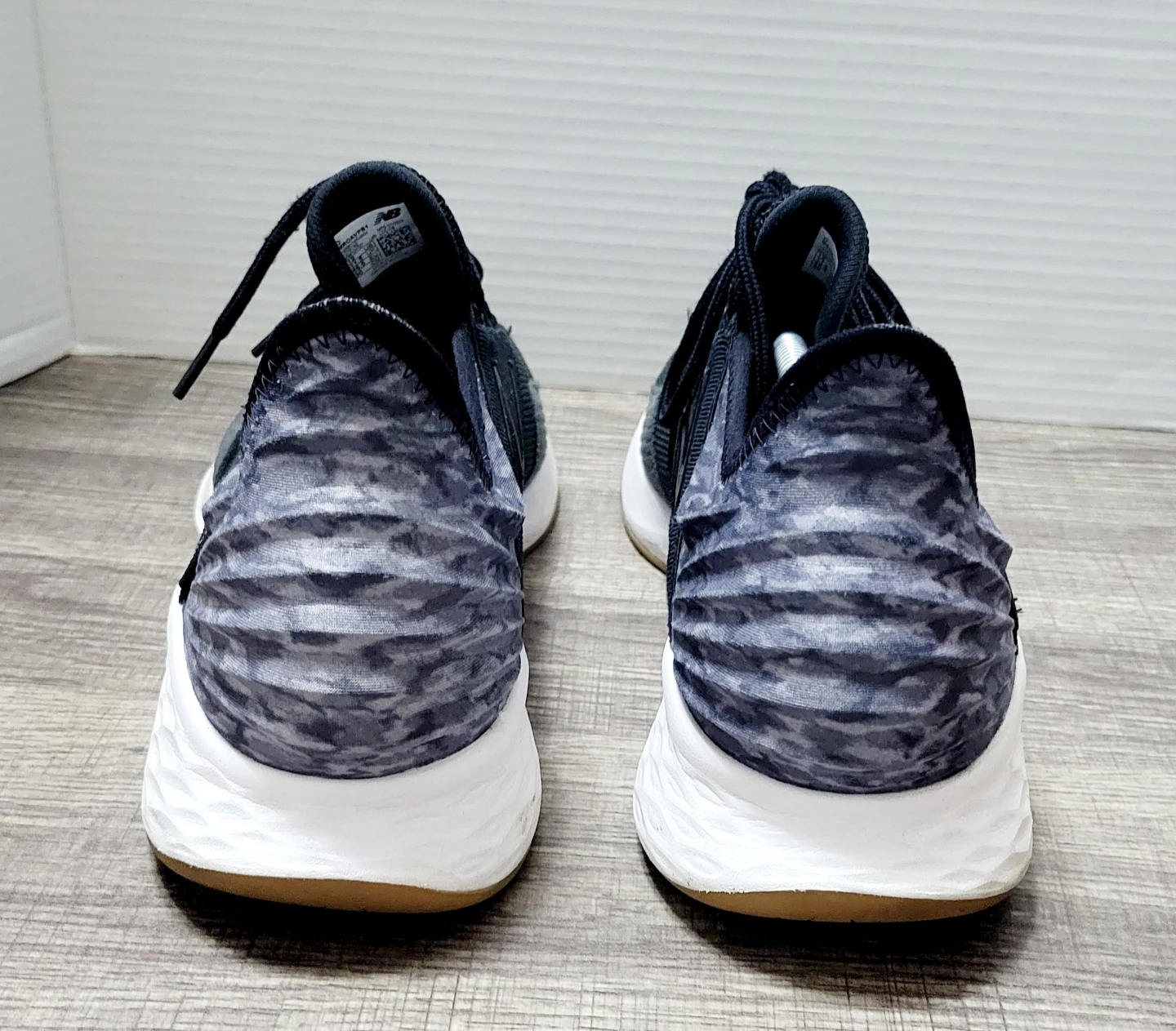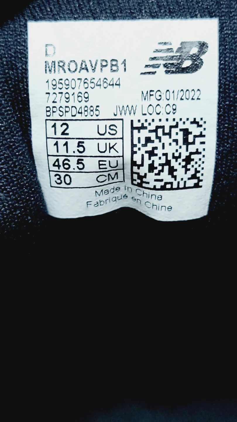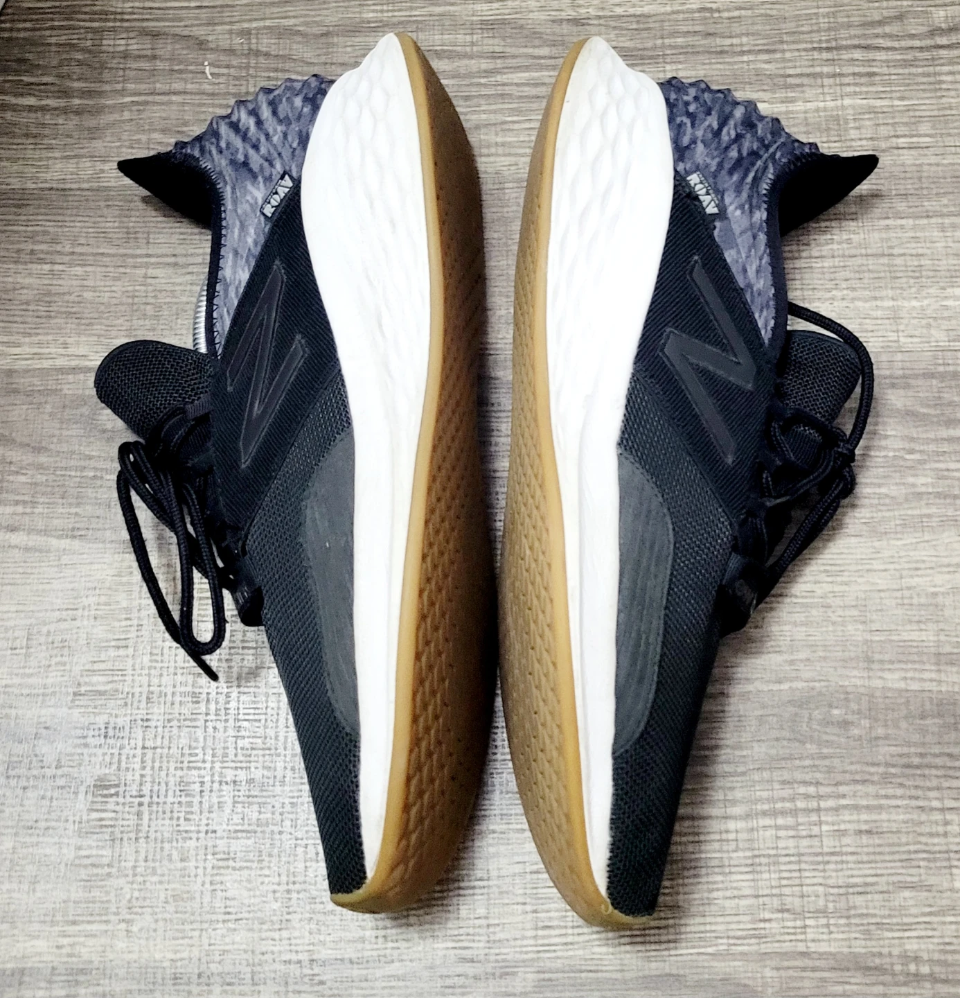 Selling a pair of New Balance Fresh Foam Roav v1 sneakers in US size 12! They are black with a gray accent on the heel. The manufacturing date is 2022 January