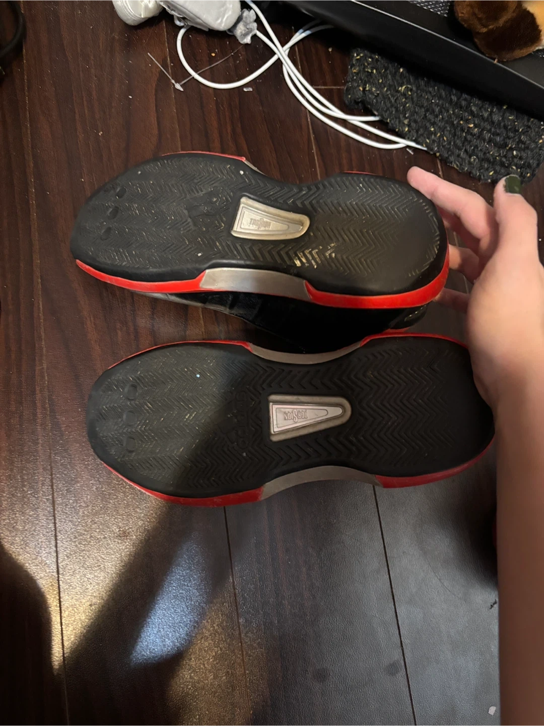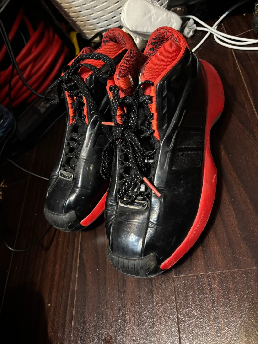 Selling a pair of Adidas T-Mac 5 shoes in black and red. They show some signs of use, but still have plenty of life left! I wore them about 9 times and they are size 8! If you wish to buy them I will clean them first :)