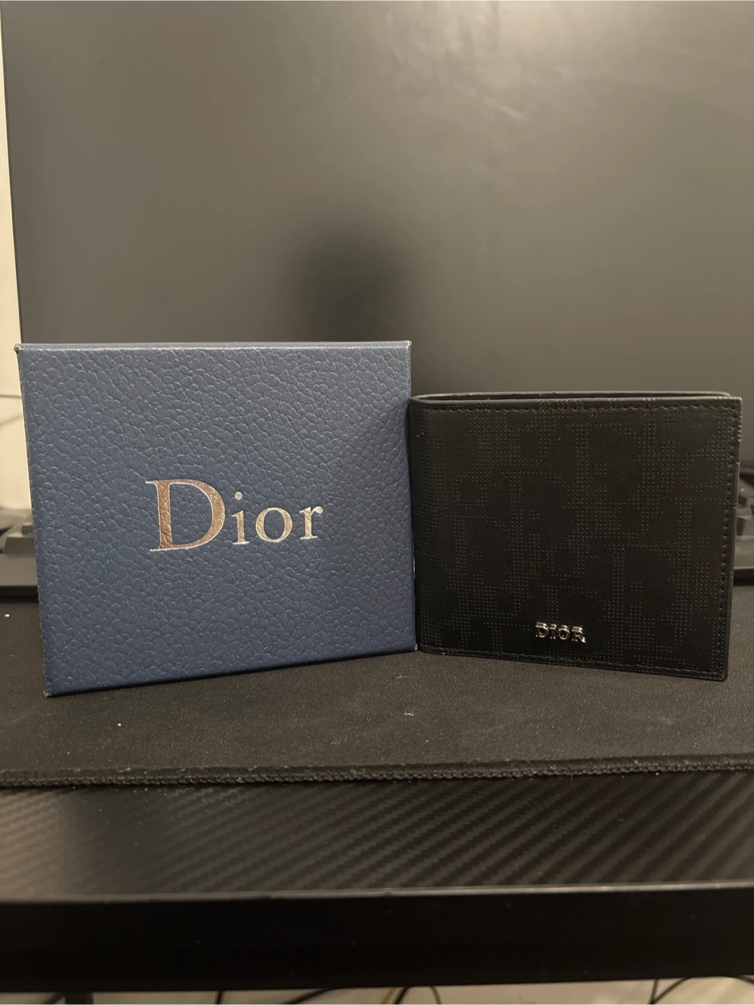 Selling a Dior black wallet that's in great condition! Comes with the original box. It's a stylish accessory for everyday use. Feel free to reach out if you're interested!