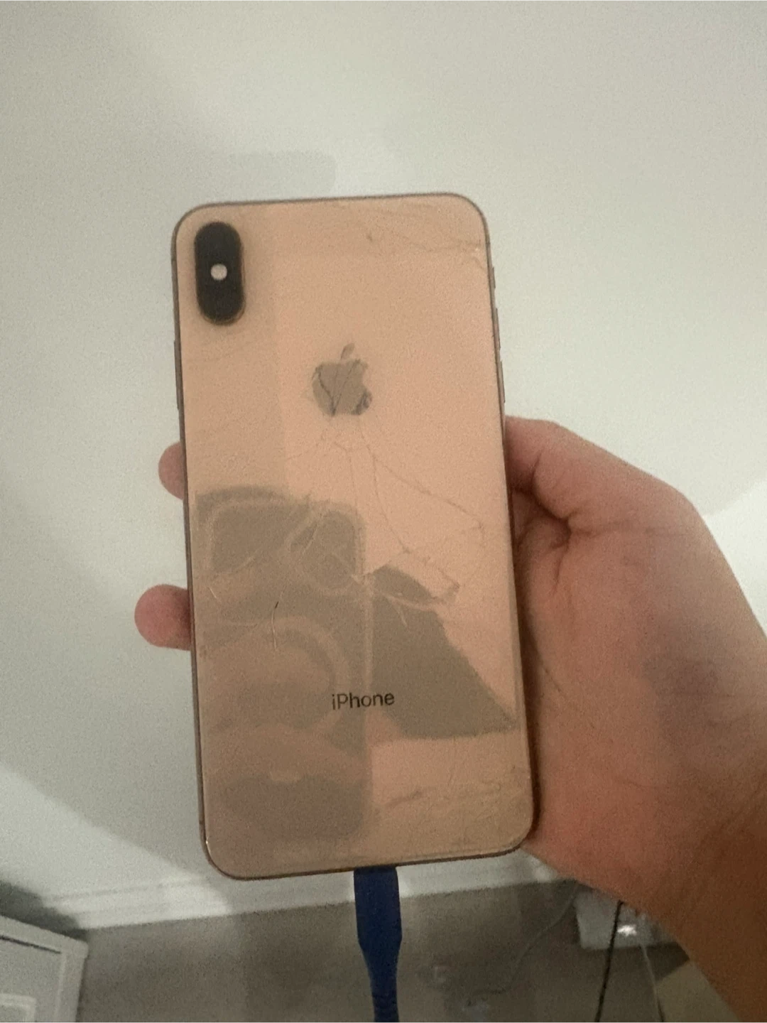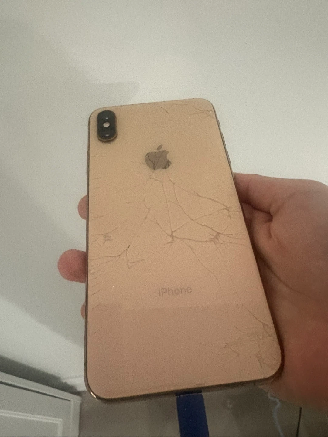 Selling an iPhone XS in gold. Please note the screen is cracked on the back Still powers on and functions perfectly like a normal phone