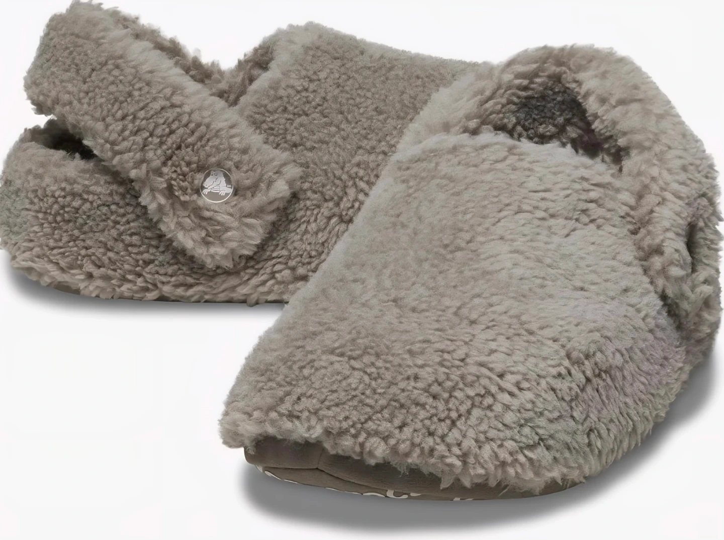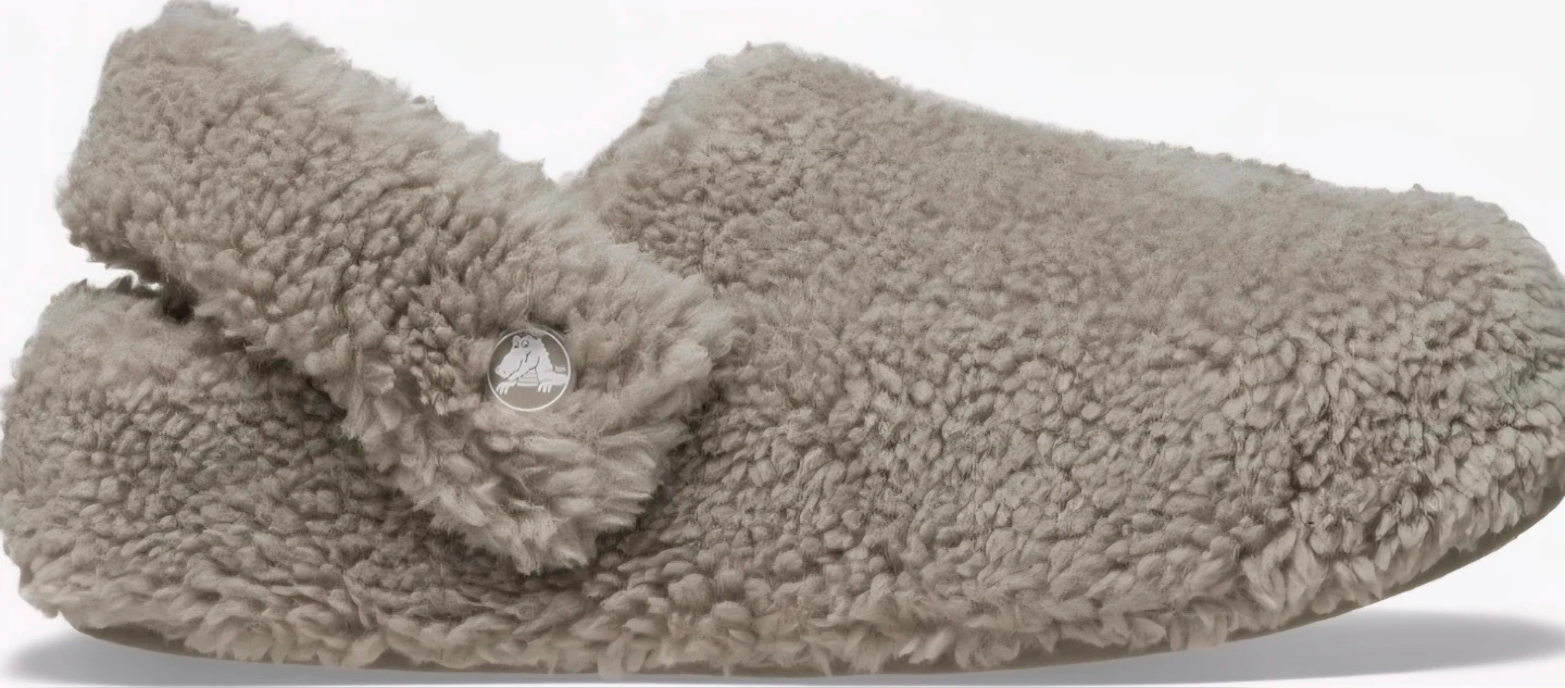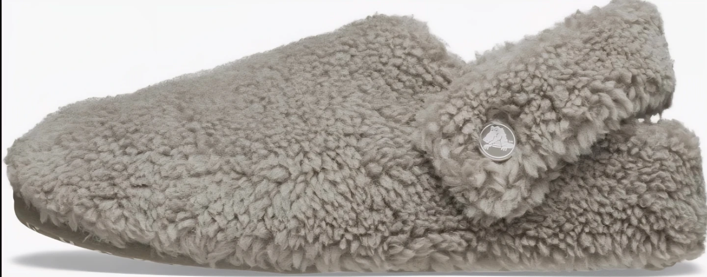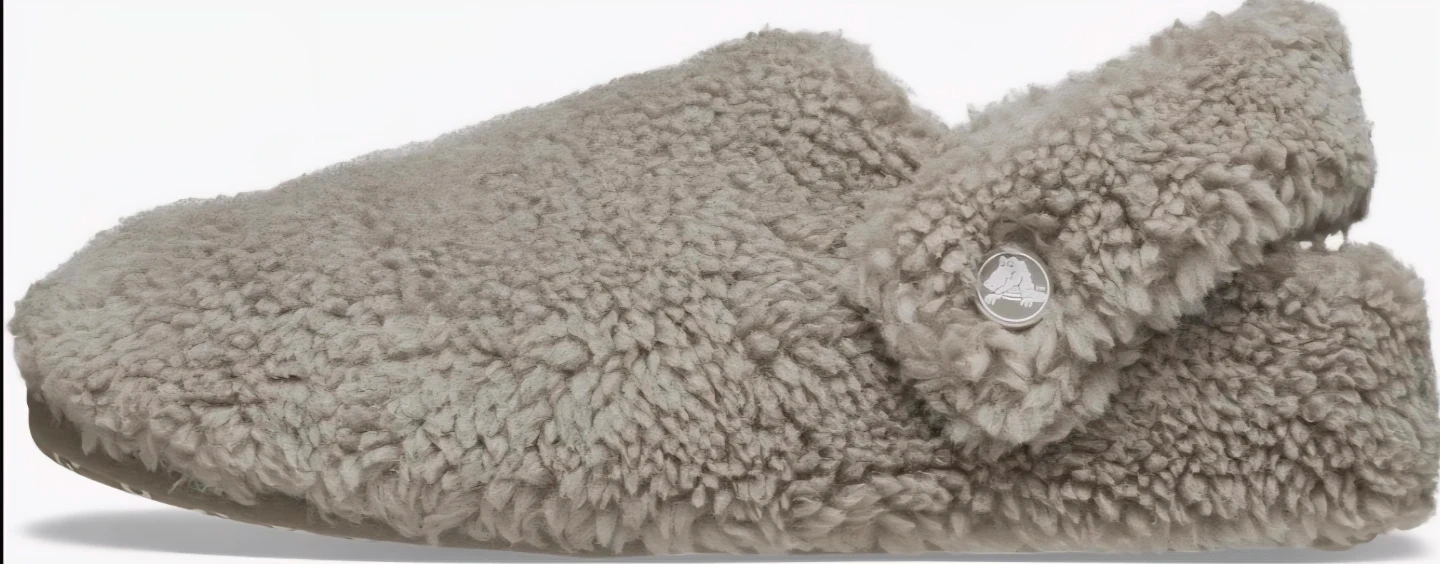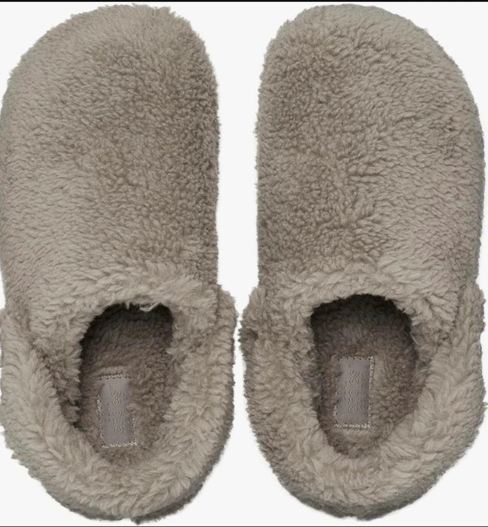 Cozzzy up with these fuzzy Crocs slippers! They look super comfy and warm, perfect for chilly Canadian evenings. Brand is Crocs.