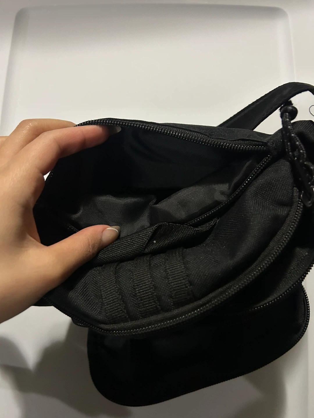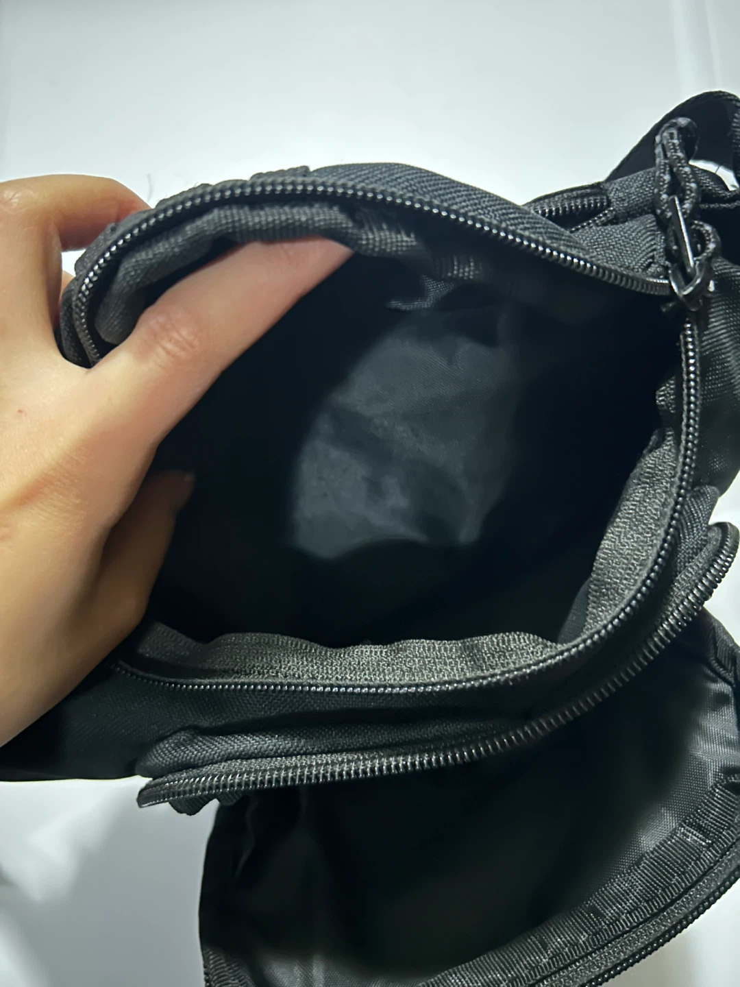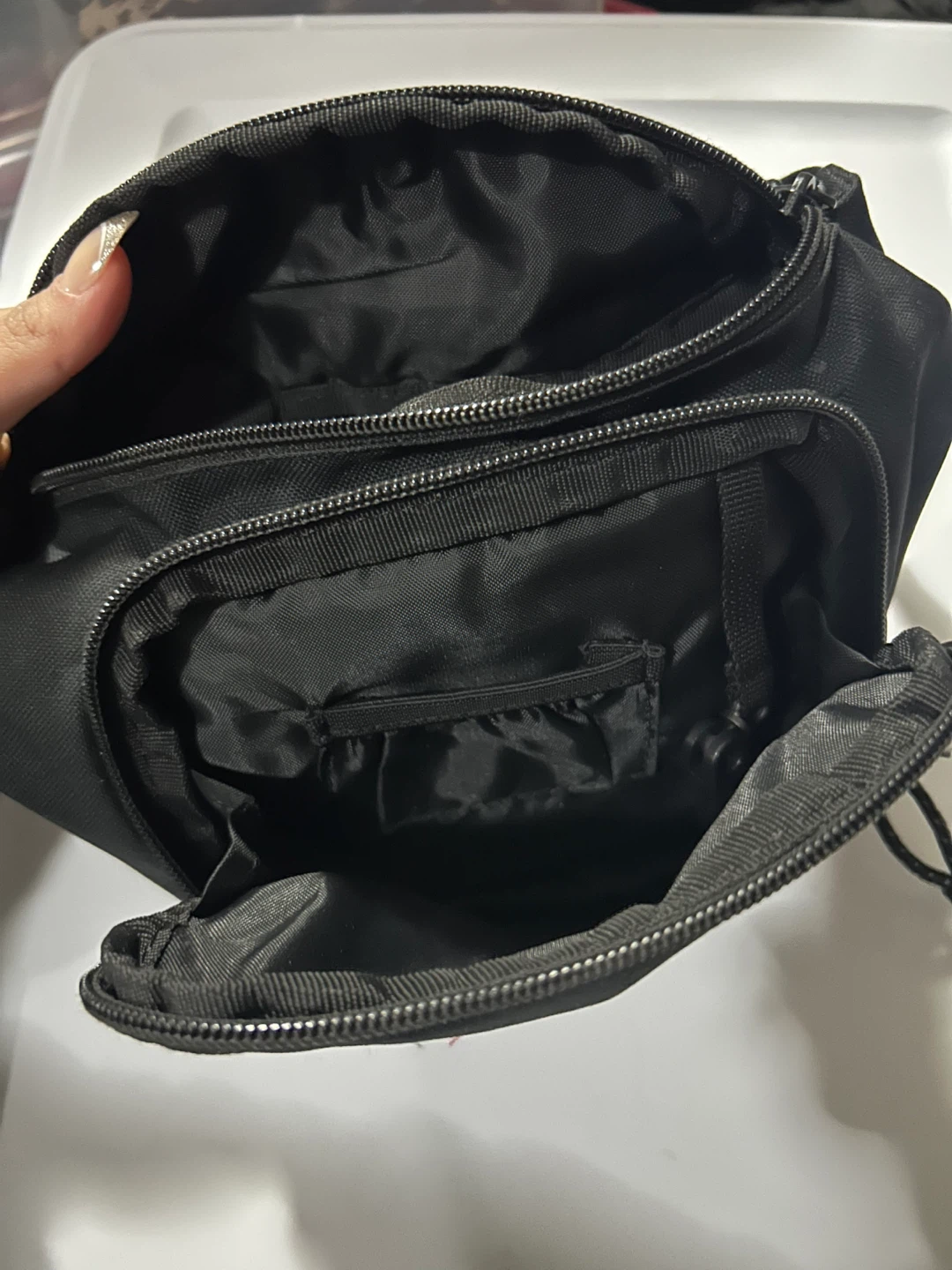 Selling a black Adidas belt bag. It has a main compartment and several smaller pockets with zippers. The strap also has the Adidas logo on it. Great for everyday use or travel!