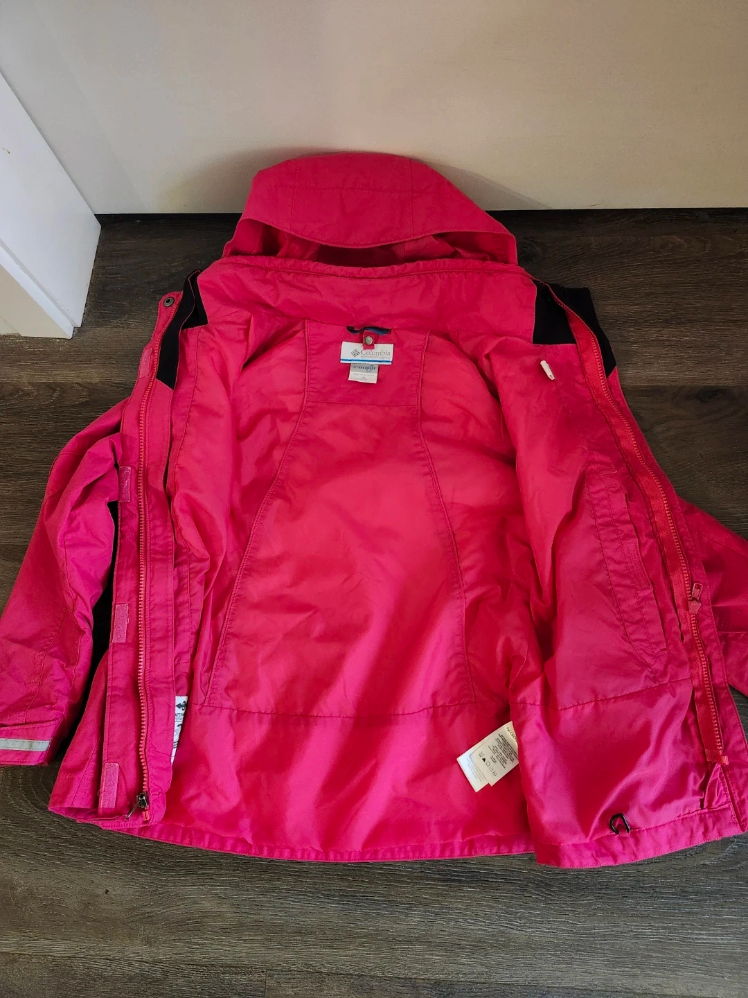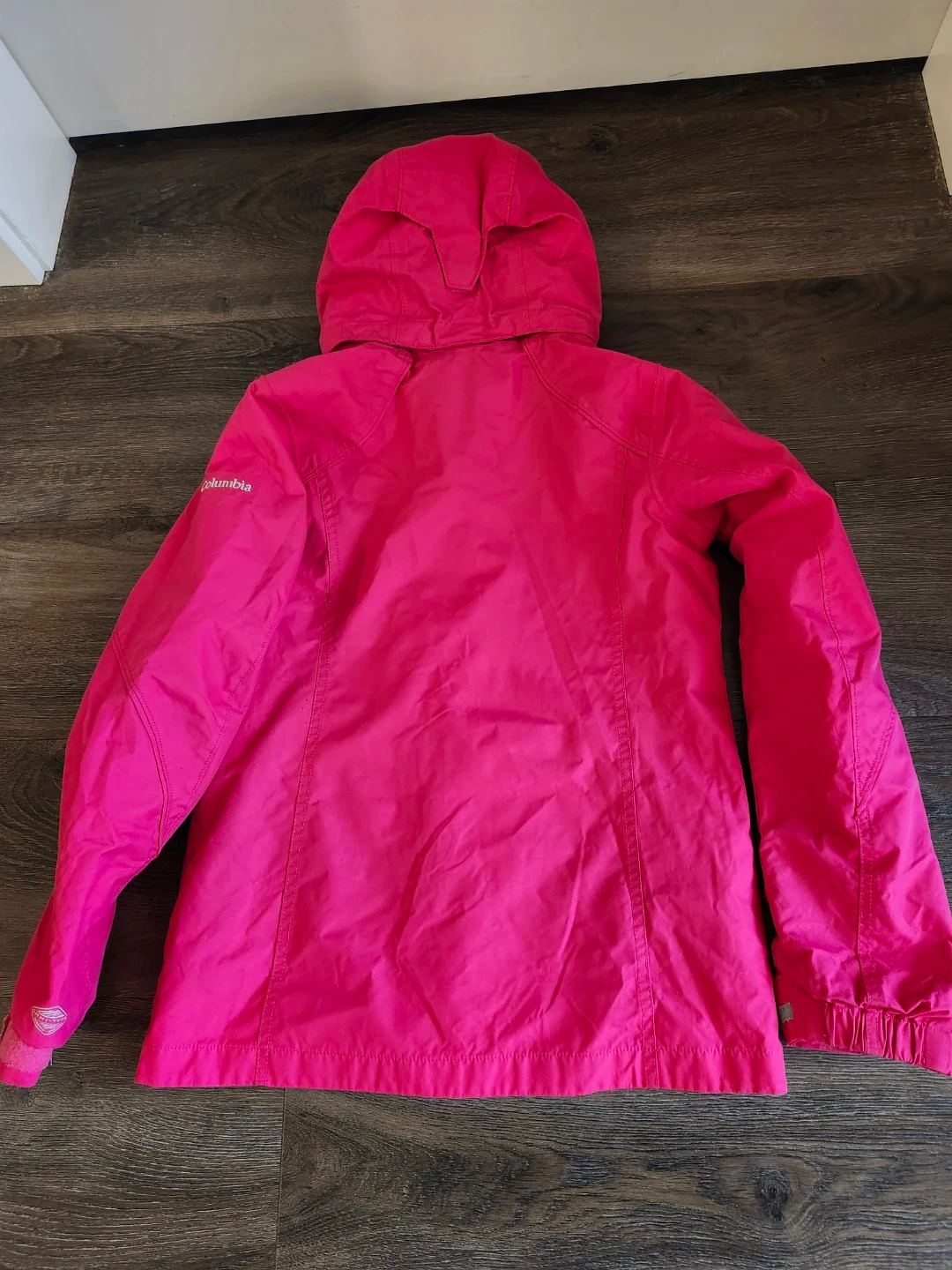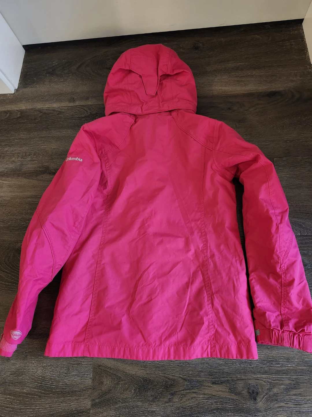 Lightly worn Columbia insulated, hooded jacket in a cherry red colour. Fits 10-12 year olds, and features the Outgrown system, which allows the sleeves to be extended as your child grows. Perfect for staying warm and dry during outdoor adventures