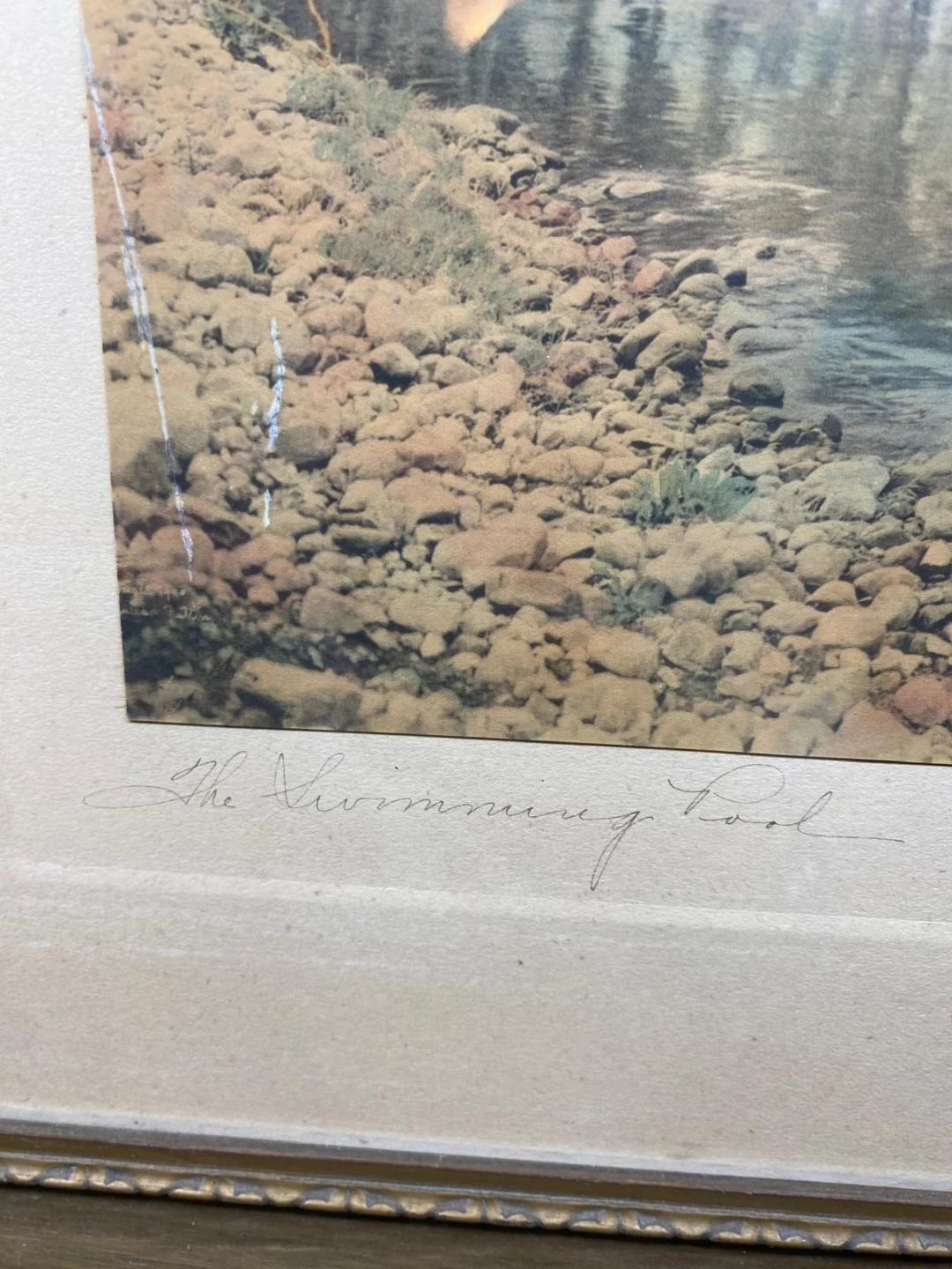 Selling a framed print titled "The Swimming Pool".