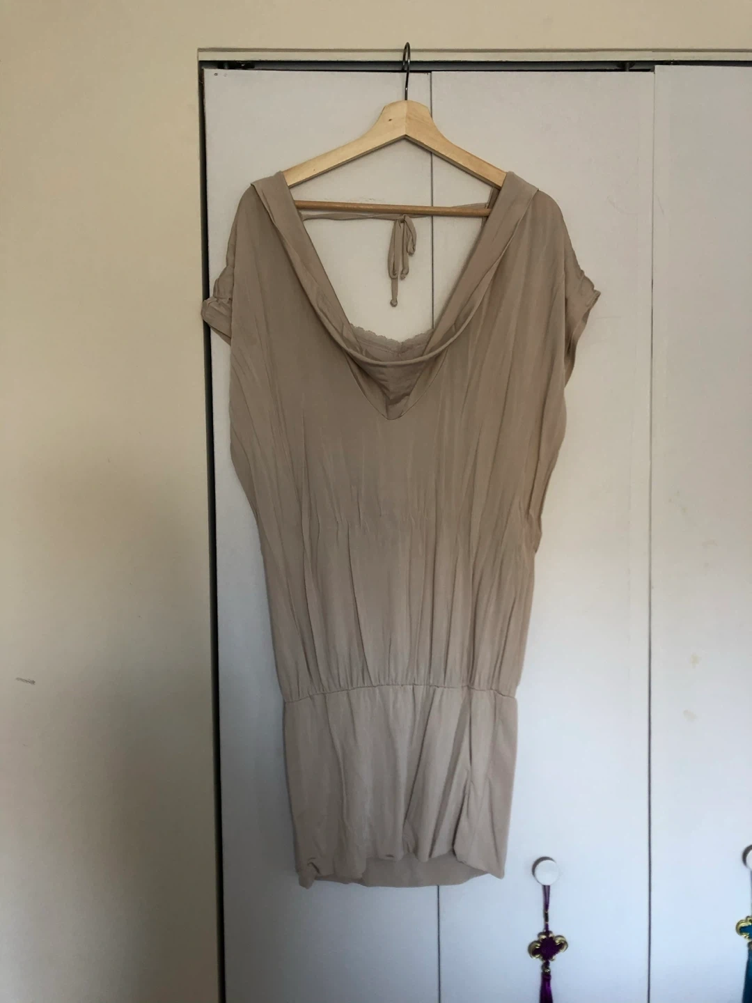 Motivi Bodycon Open Back Beige Dress - Made in Italy - Size L