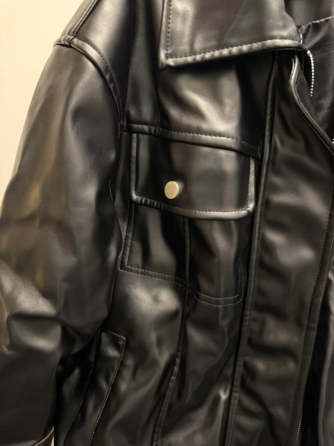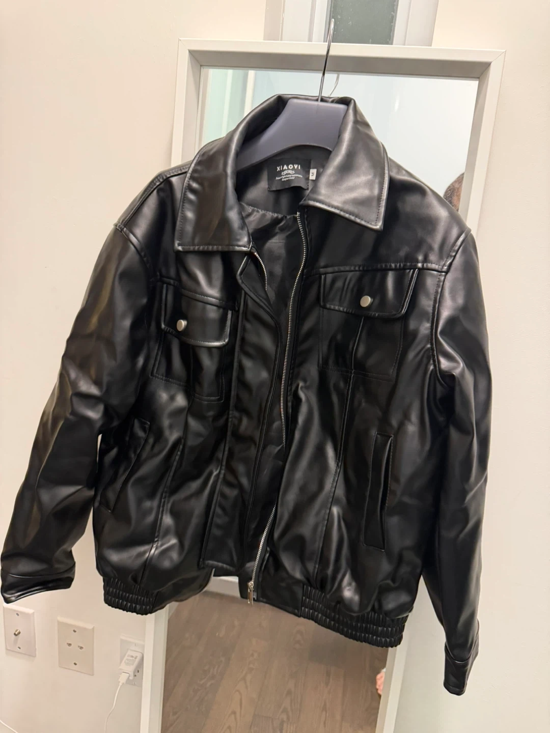 Selling a stylish black faux leather jacket from Xiaoyi! It's a size medium and in great condition. Perfect for adding a bit of edge to any outfit!