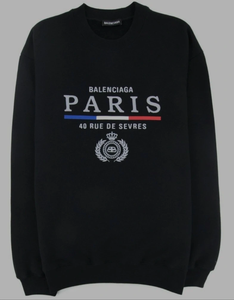 Selling a black Balenciaga sweatshirt with the 'PARIS 40 RUE DE SEVRES' design. It's in great condition