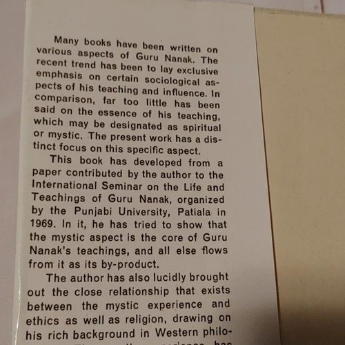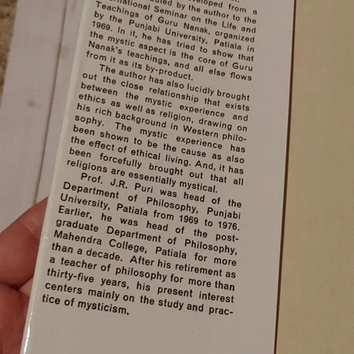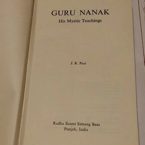 Guru Nanak His Mystic Teachings By J.R. Puri 1982 Vintage Adult