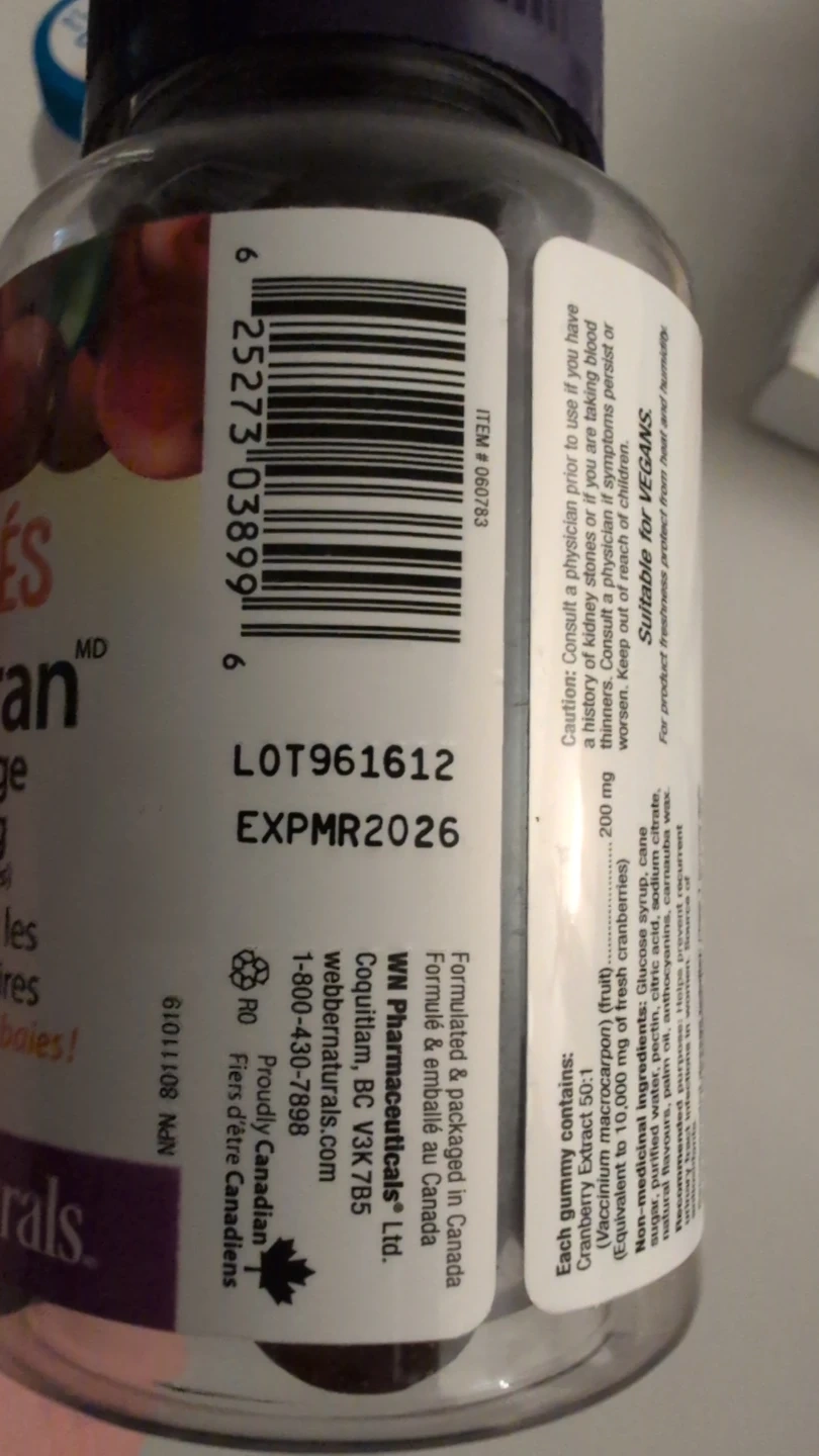 Webber Naturals Ultra Cranberry Gummy vitamins for UTIs. Expiry date is in 2026 but one expired in Nov 2035. All are sealed. Pickup at Queen/Jones in Leslieville.