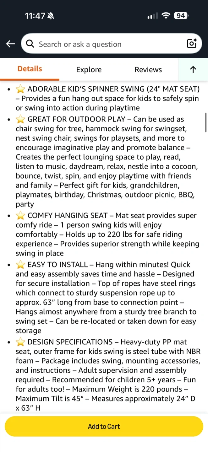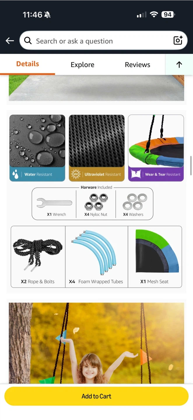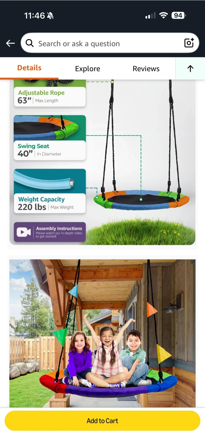 Bring fun and excitement to any backyard or playground with this SORBUS 40-inch multi-color saucer tree swing. Perfect for kids to swing, relax, and play together. Large round mat seat allows multiple kids to sit comfortably at the same time.
