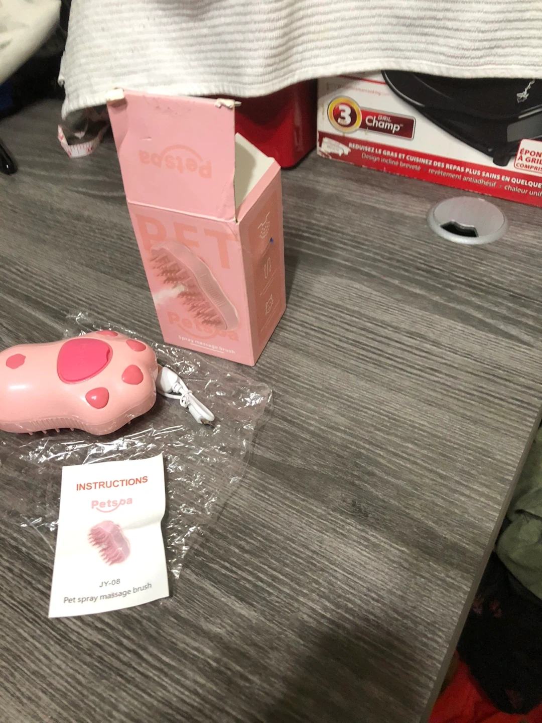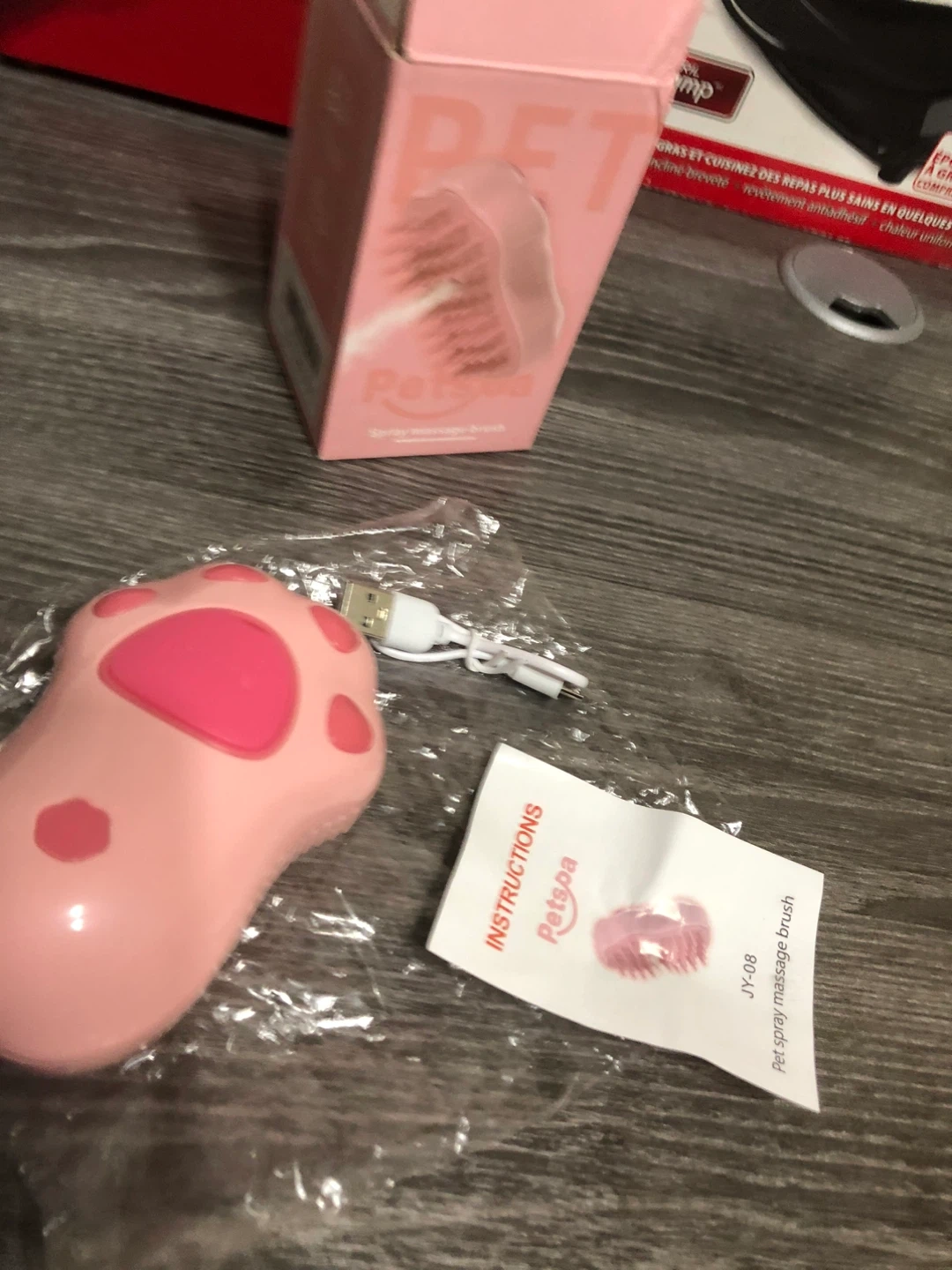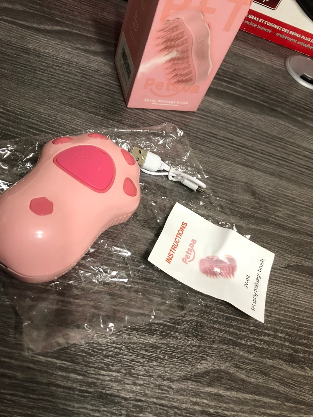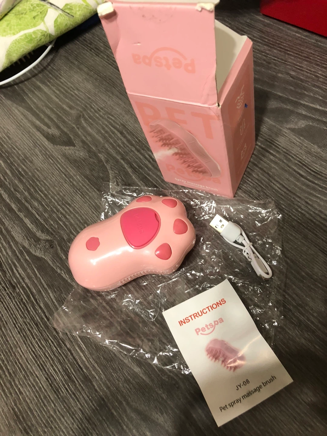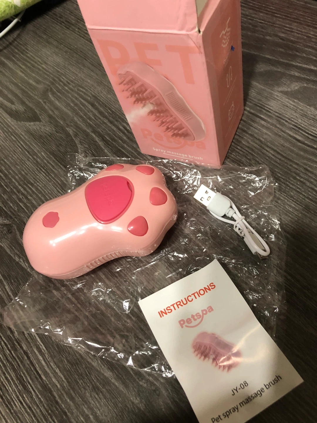 Selling a new Petspa spray massage brush in pink! It's brand new and comes with the box and instructions. It also includes a charger. Great for grooming your furry friend!