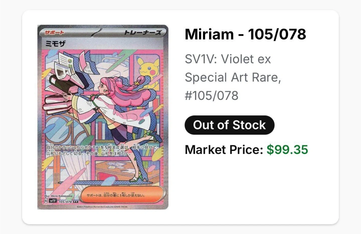 Selling a Miriam Trainer card, SV1V 251/198. It's a special art rare card from the Violet ex series. Great for collectors!