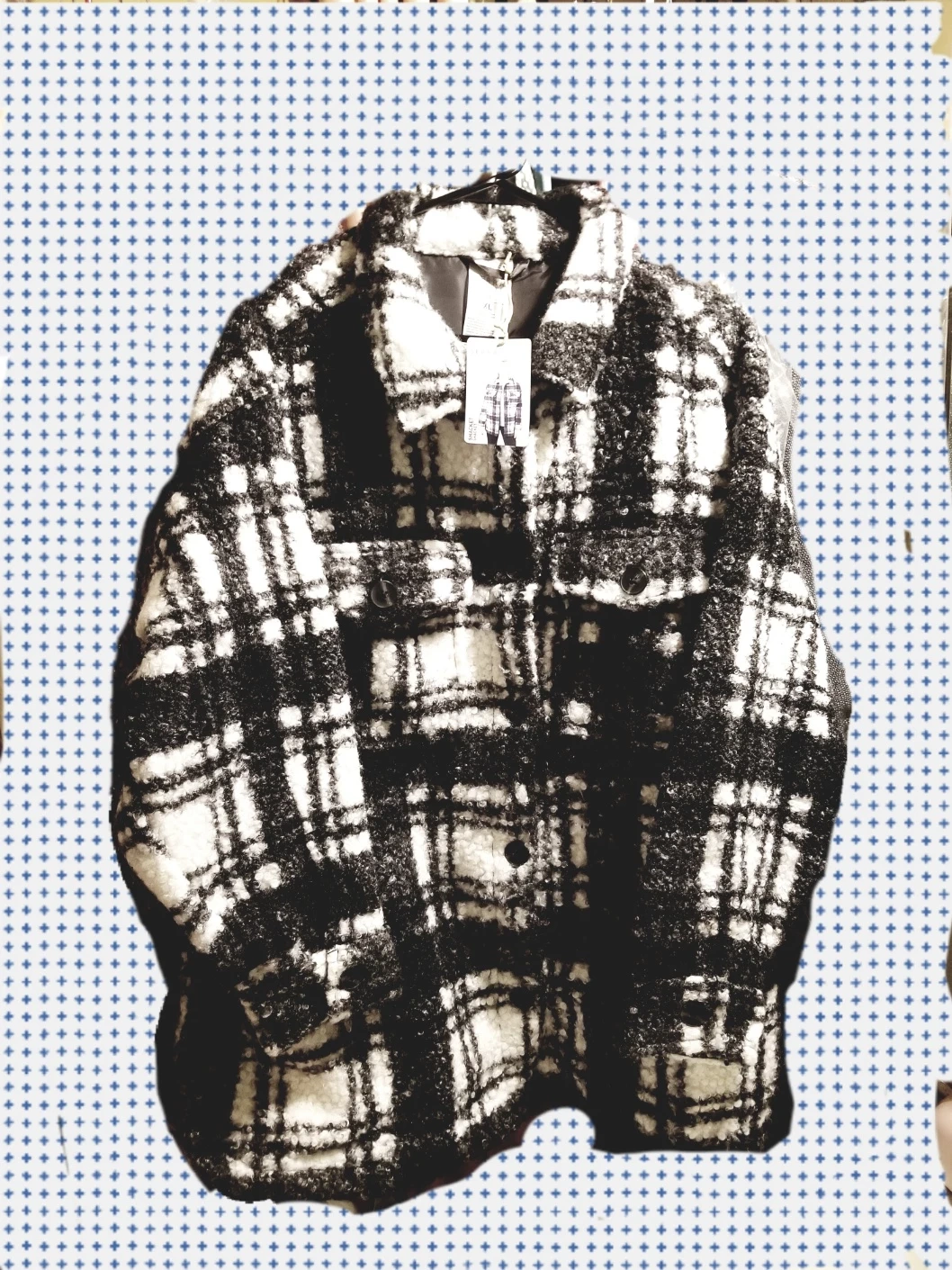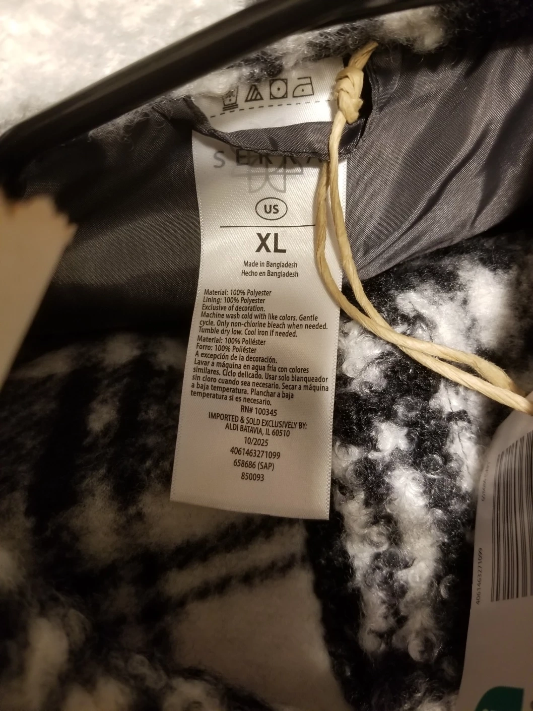 Selling a Aldi's brand: Serra plaid shirt jacket in size XL. It's made of 100% polyester with a polyester lining. Side pockets. The care instructions are: machine wash cold with like colors, gentle cycle, do not bleach, tumble dry low, cool iron if needed.