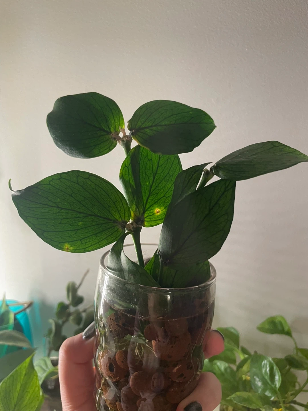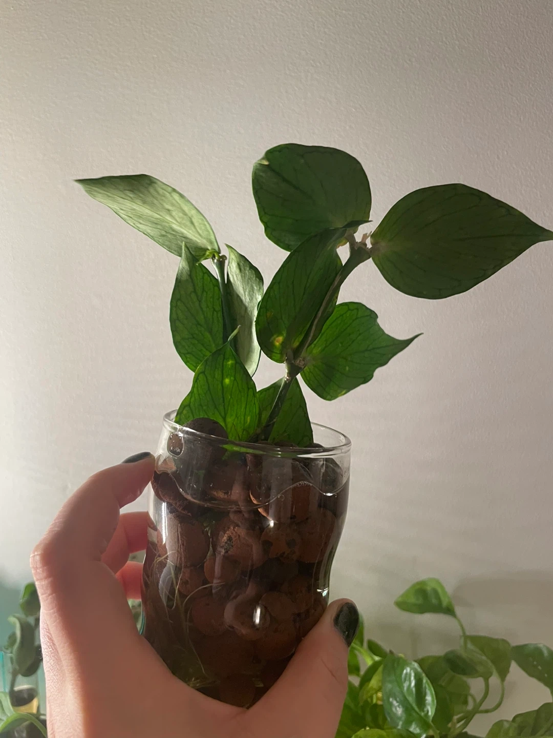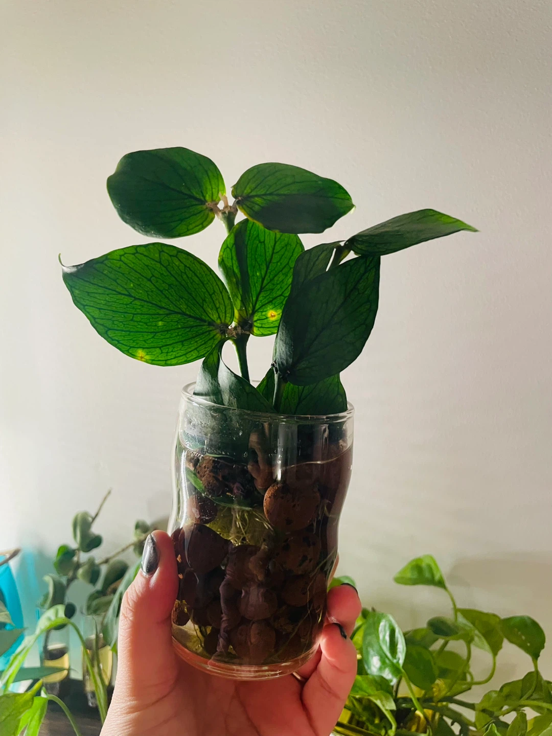 Healthy, well-rooted specimen growing in LECA (semi-hydroponics) with a visible, strong root system. Features unique fishtail-shaped leaves with distinct venation; currently pest-free and showing stable growth. Thrives in bright indirect light and is low-maintenance in this setup.
