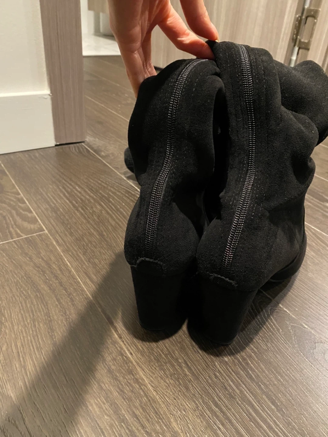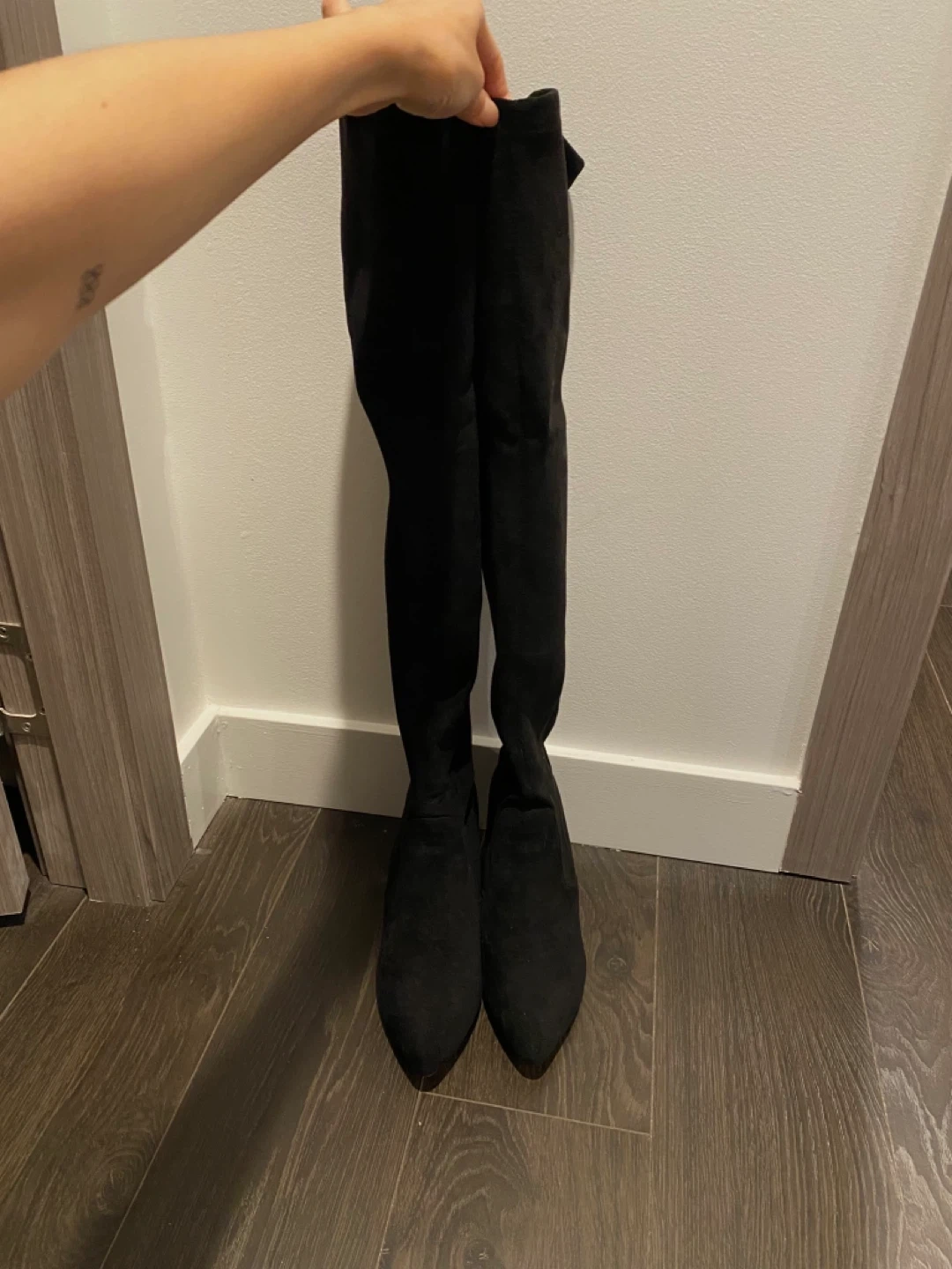 Lightly worn on the soles. Gently used. No box just boots. Stunning! You’ll get a lot of compliments. Comfortable to walk in All day and flattering on the legs.