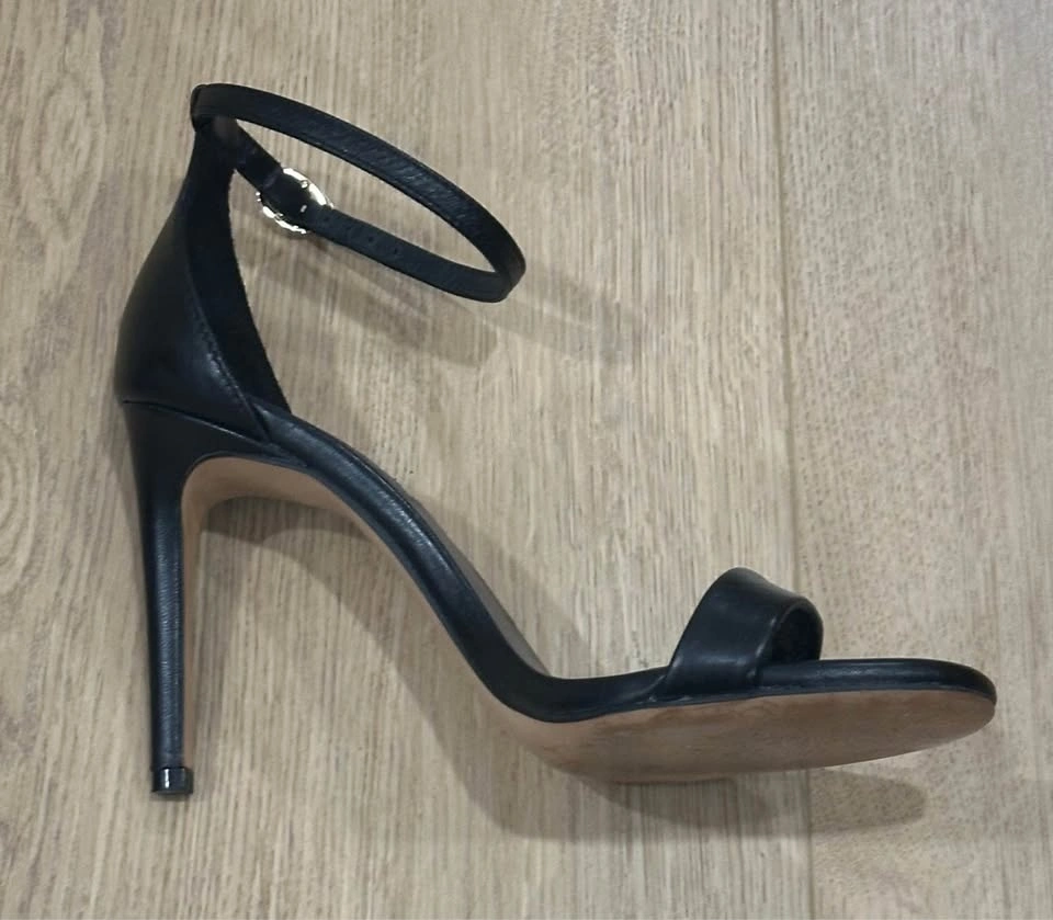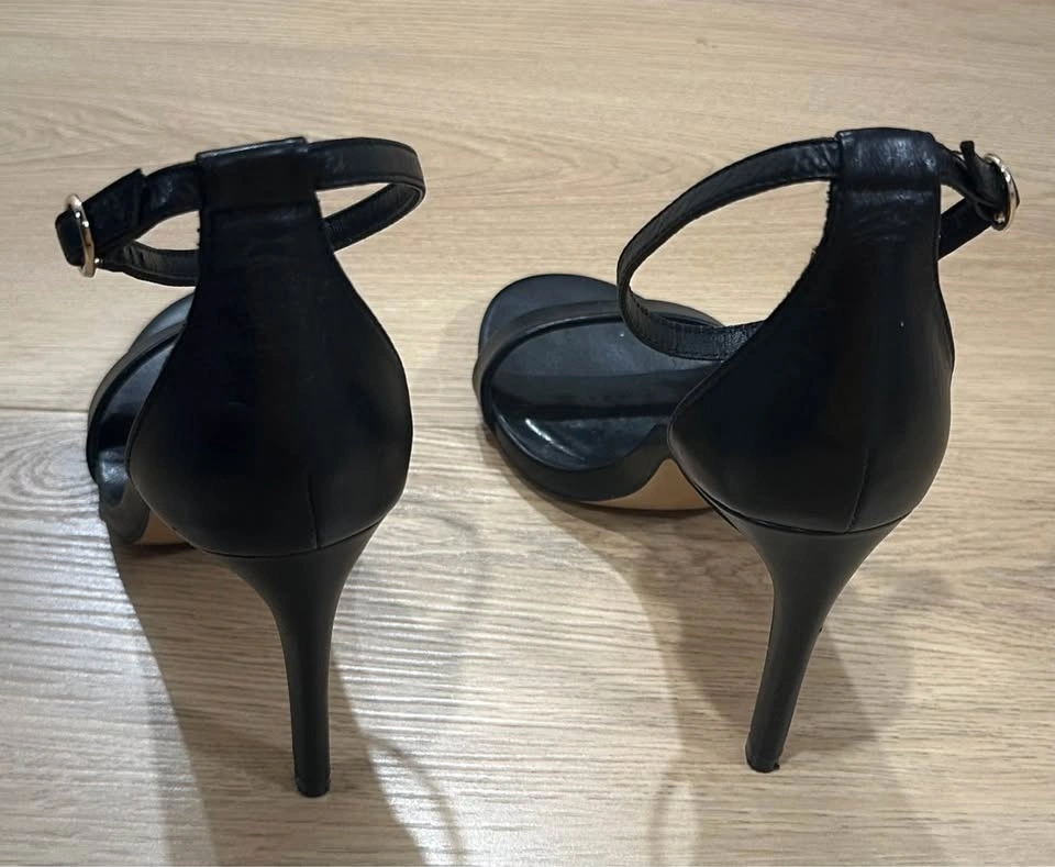 Zara black leather high-heeled sandals with an ankle strap