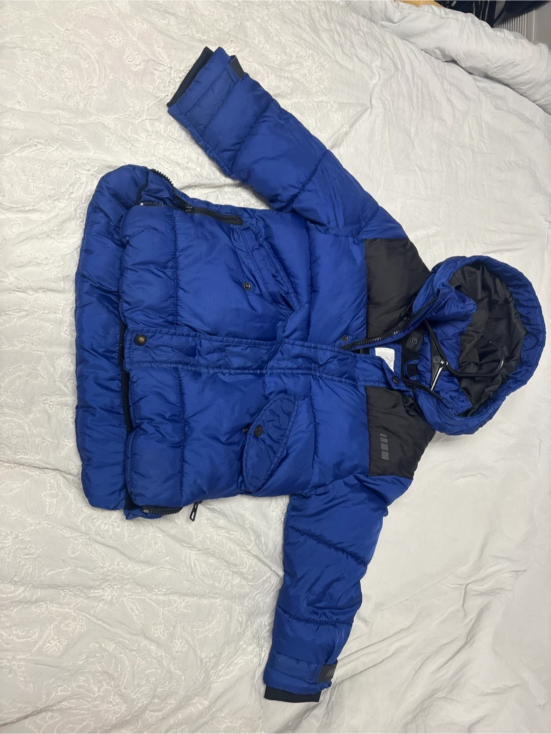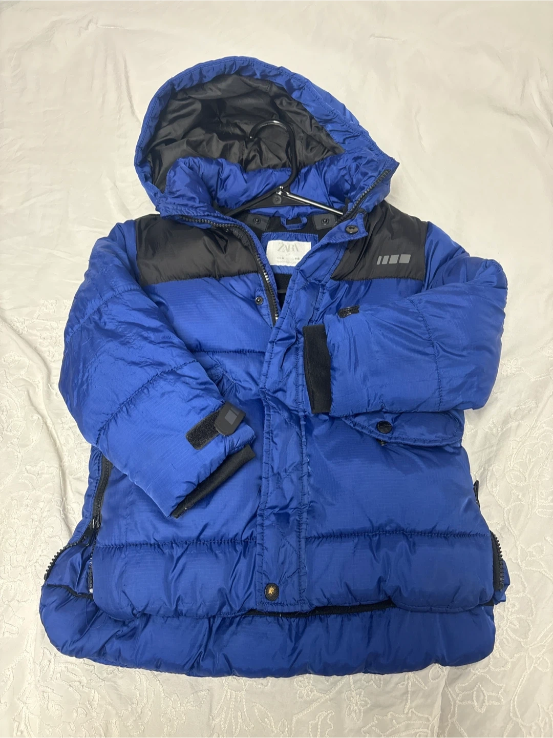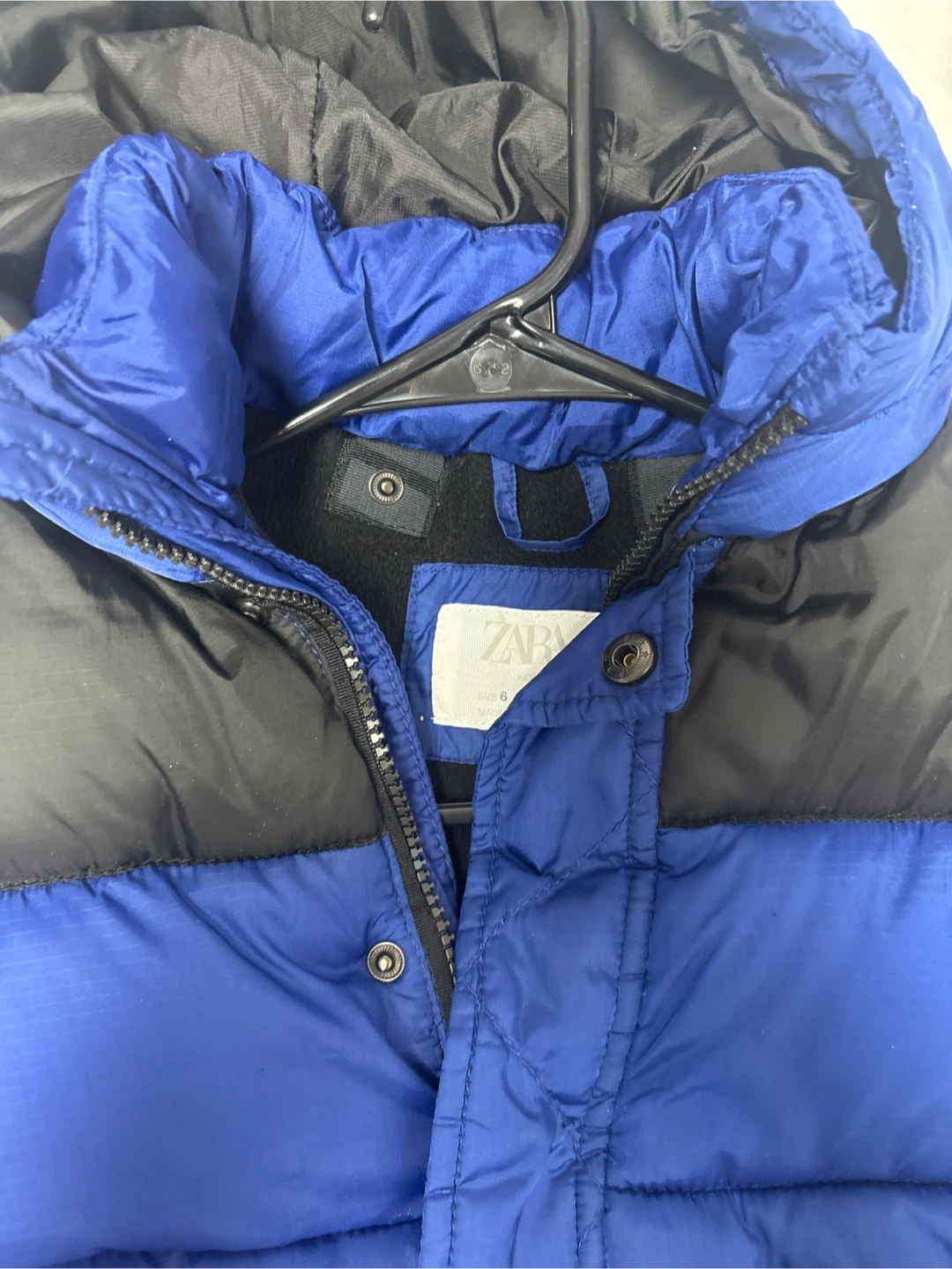 Zara Kids blue puffer jacket in size 9. It is in great condition and perfect for keeping your little one warm during the colder months. The jacket features a hood and zipper closure. Pick up. Cash only