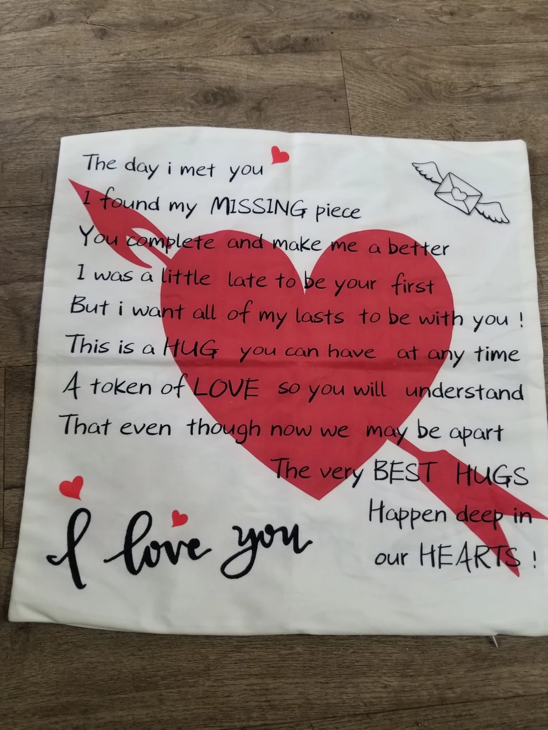 A decorative throw pillow with a sweet love theme. It features heartfelt messages and cute designs, perfect for adding a touch of warmth to any room. The pillow is in great condition and ready to bring a cozy vibe to your home! Brand new