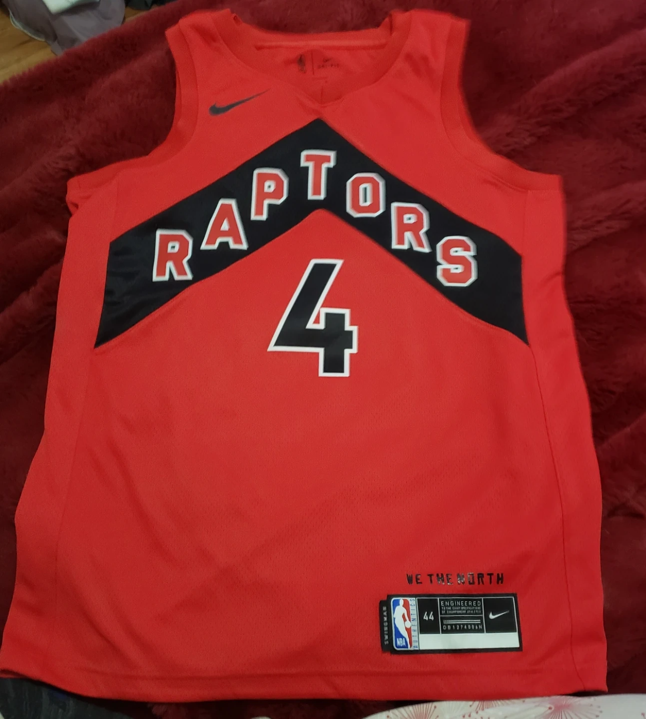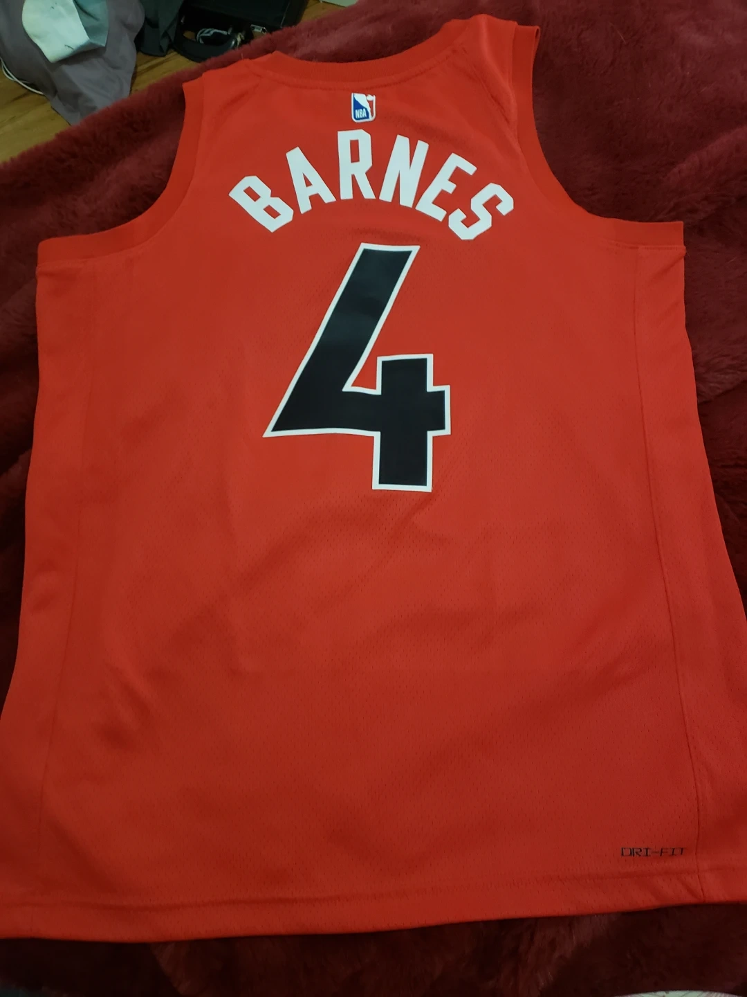 Selling a Toronto Raptors jersey, Barnes #4, in size 44 (Medium). It's a Nike Dri-FIT jersey in great condition! "We The North" is featured on the front.