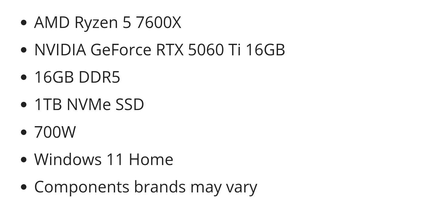 Gaming PC - Ryzen 5 7600X, RTX 5060 Ti, 16GB DDR5