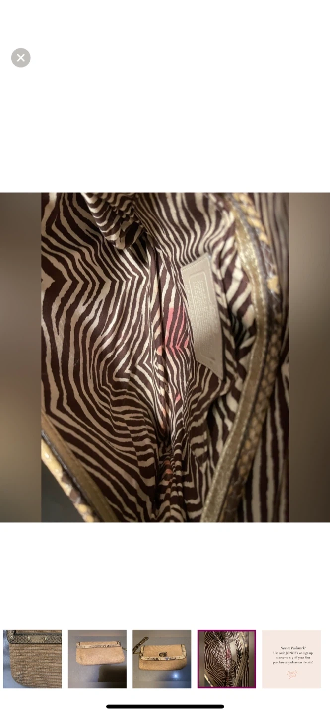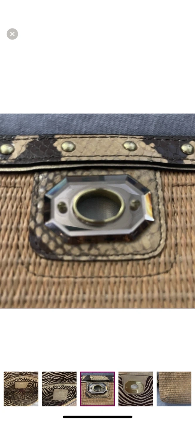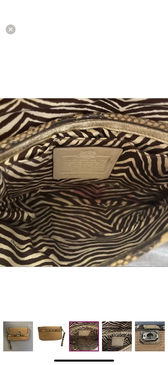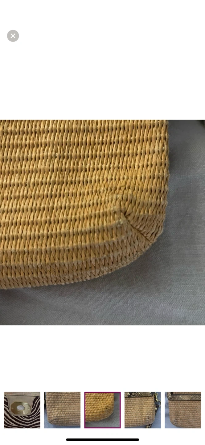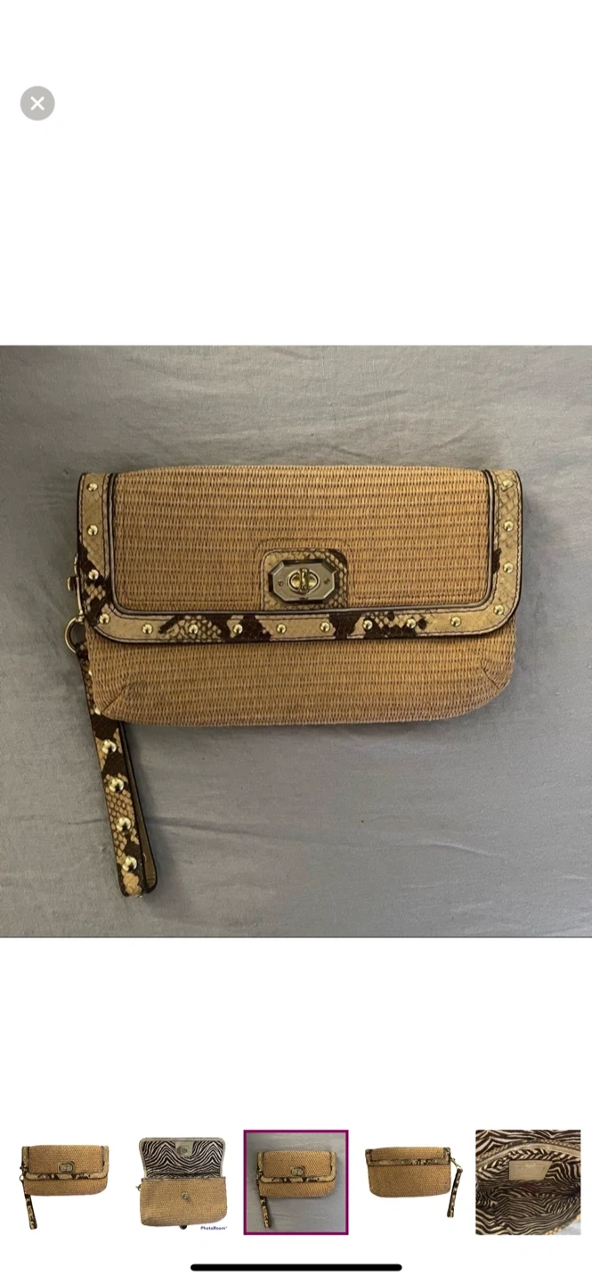 This Coach straw wristlet shows some minor signs of wear and has an ink stain on the lining but is in excellent wear now condition.