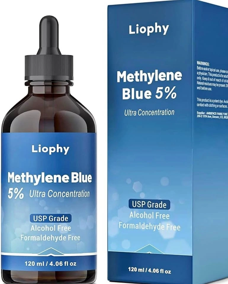 Pharmaceutical Grade Purity – Methylene Blue drops made with 99.99% pure methylene blue for humans, formulated with USP grade quality. High 5% Concentration – Potent 5% strength means fewer drops per use compared to lower-dose options, delivering more value from every 120 mL bottle. Simple & Clean Formula – Only methylene blue and distilled water, no fillers or unnecessary additives, ideal for daily wellness routines. Dark Glass Bottle with Dropper – Amber-style glass packaging reduces light exposure while the precision dropper ensures accurate and consistent dosing. Supports Active Lifestyles – Designed for students, professionals, and older adults seeking reliable, Methylene Blue Drops for daily support.