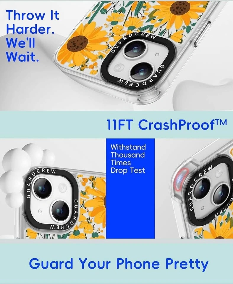 Built with Crashproof tech, reinforced corner airbags, and Smart Curve edges to absorb impact. Raised bezels shield your screen and camera from scratches and drops.