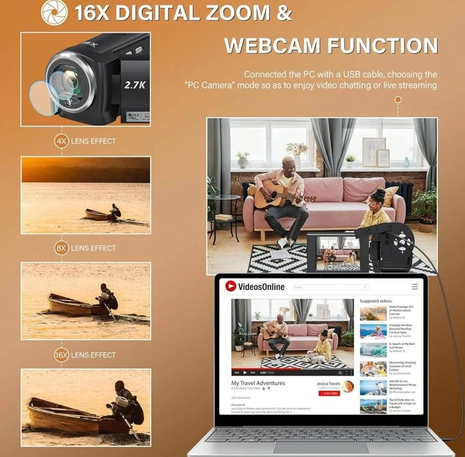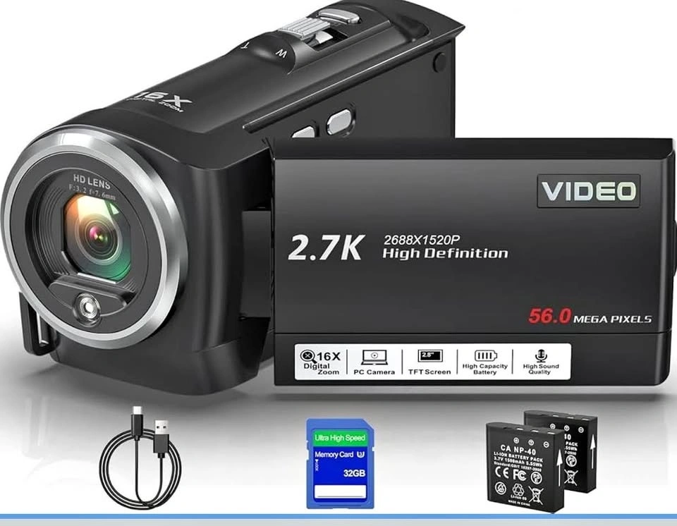 Camcorder Video Camera QHD 2.7K 56MP 16X Digital Zoom